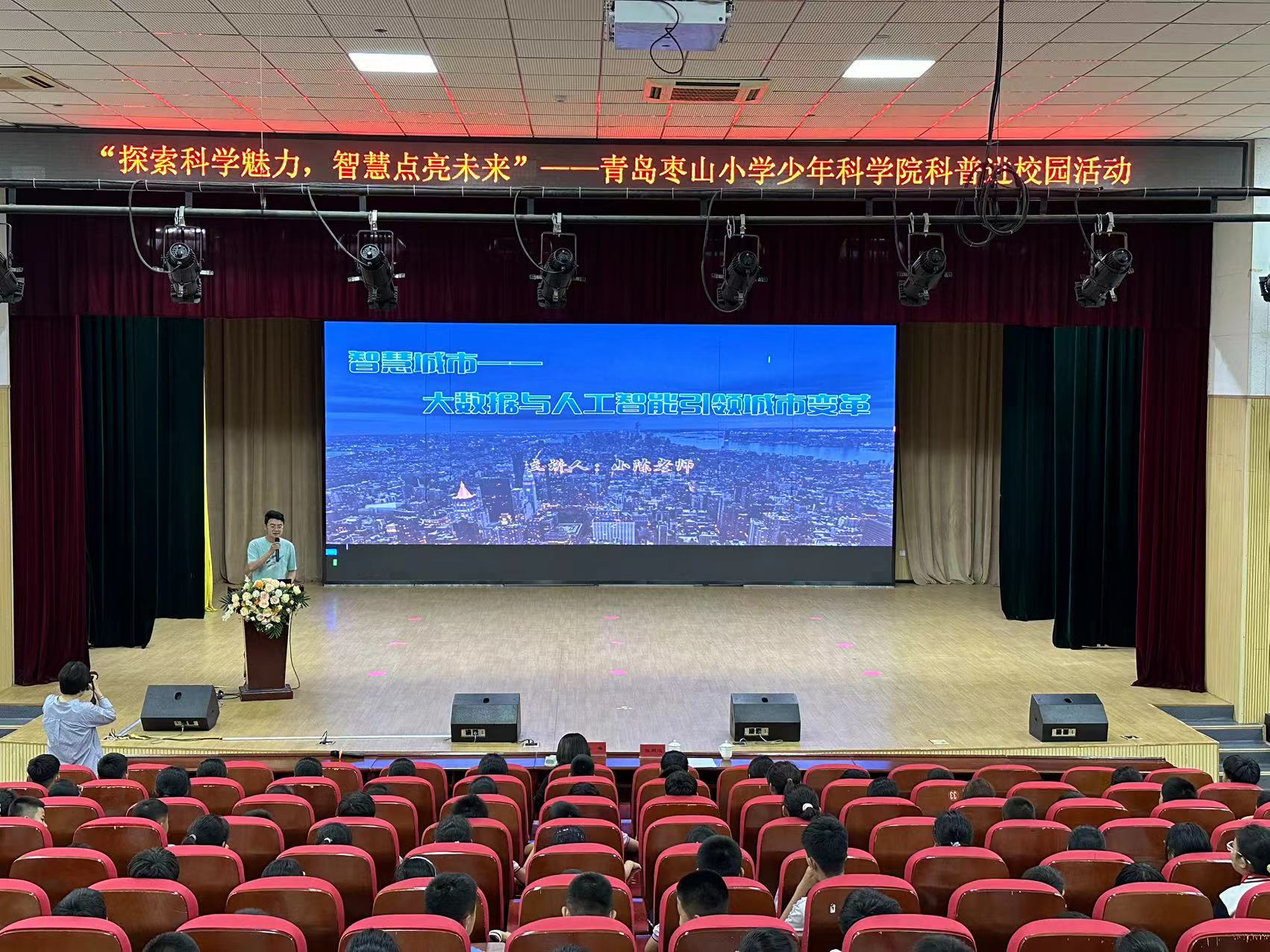 6月4日下午,星空XK官网研究生党支部“数智先锋讲师团”走进青岛市枣山小学少年科学院,开展“探索科学魅力,智慧点亮未来”主题活动,讲师团成员2022研究生陈鹏运为在场的师生带来了别开生面的《智慧城市》主题科普讲座。