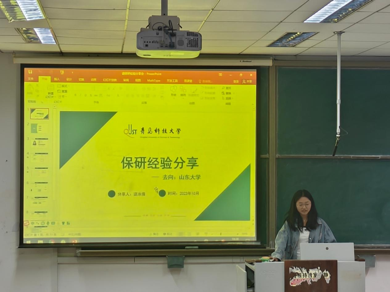 10月20日,星空XK官网在明德楼230教室举办“权益与你,‘研’路同行”保研经验分享会。2020级优秀学生代表樊怡麟、刘毅、逯冰倩、宫传政进行经验分享,数科科学学院170余名学生参加分享会。