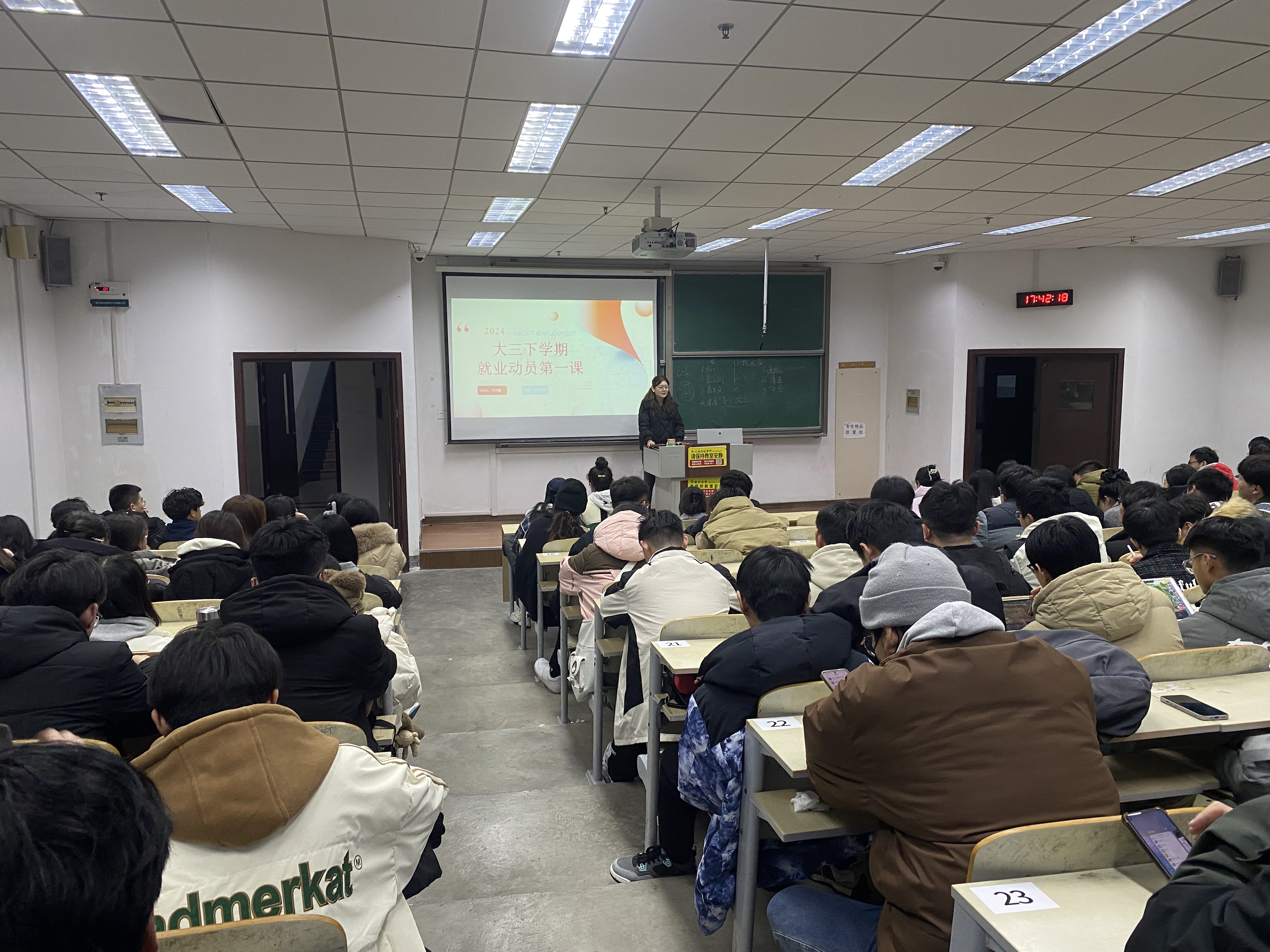 帮助2021级学生明晰未来规划,更好地了解就业形势,引导学生及早树立正确的择业观和就业观,3月4日,星空XK官网在明德楼312教室举办2021级开学第一课暨就业动员大会,星空XK官网2021级辅导员卞文馨主持本次会议,全体2021级学生参会。