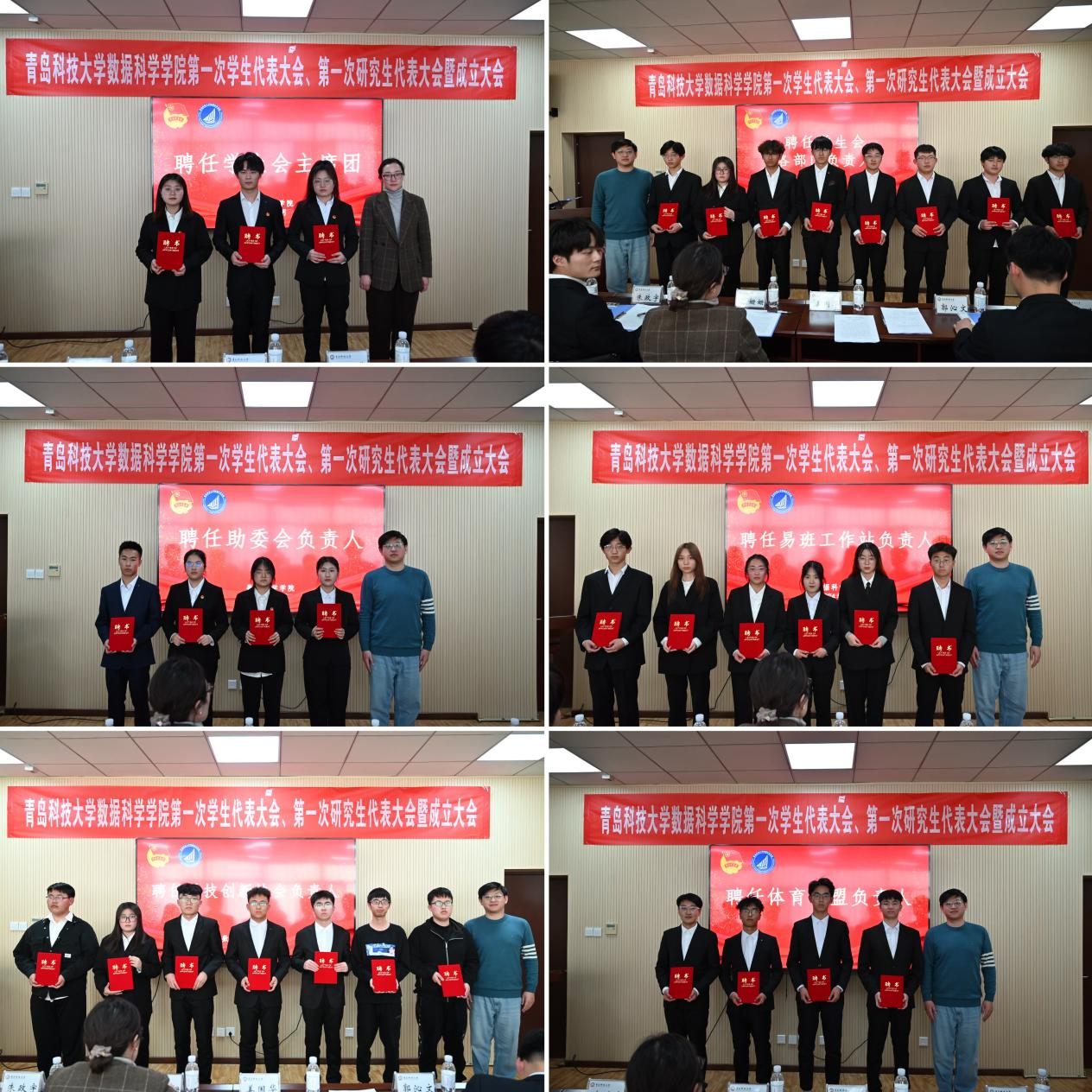 接着,大会宣读了第一届学生组织成员名单,并进行了第一届学生会、助委会、易班工作站、科技创新协会、体育联盟以及研究生会聘任仪式,顾姗姗和姜国华为各部门负责人颁发聘书。朱政宇、臧银珠、李佳浩、史凡哲、韩晨以及郭沁文代表各学生组织作工作展望。
