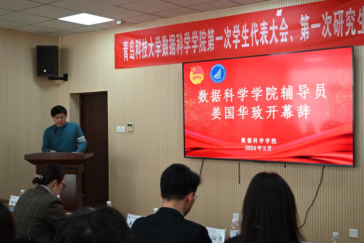 大会在铿锵有力的国歌声中拉开帷幕。首先,由姜国华致开幕词,他表示学生组织是连接学生与学院之间的桥梁,希望新一届学生组织能持续深挖我院特色,打造活动品牌,提升专业魅力,为服务同学成长成才、助推学校建设发展做出积极的贡献。