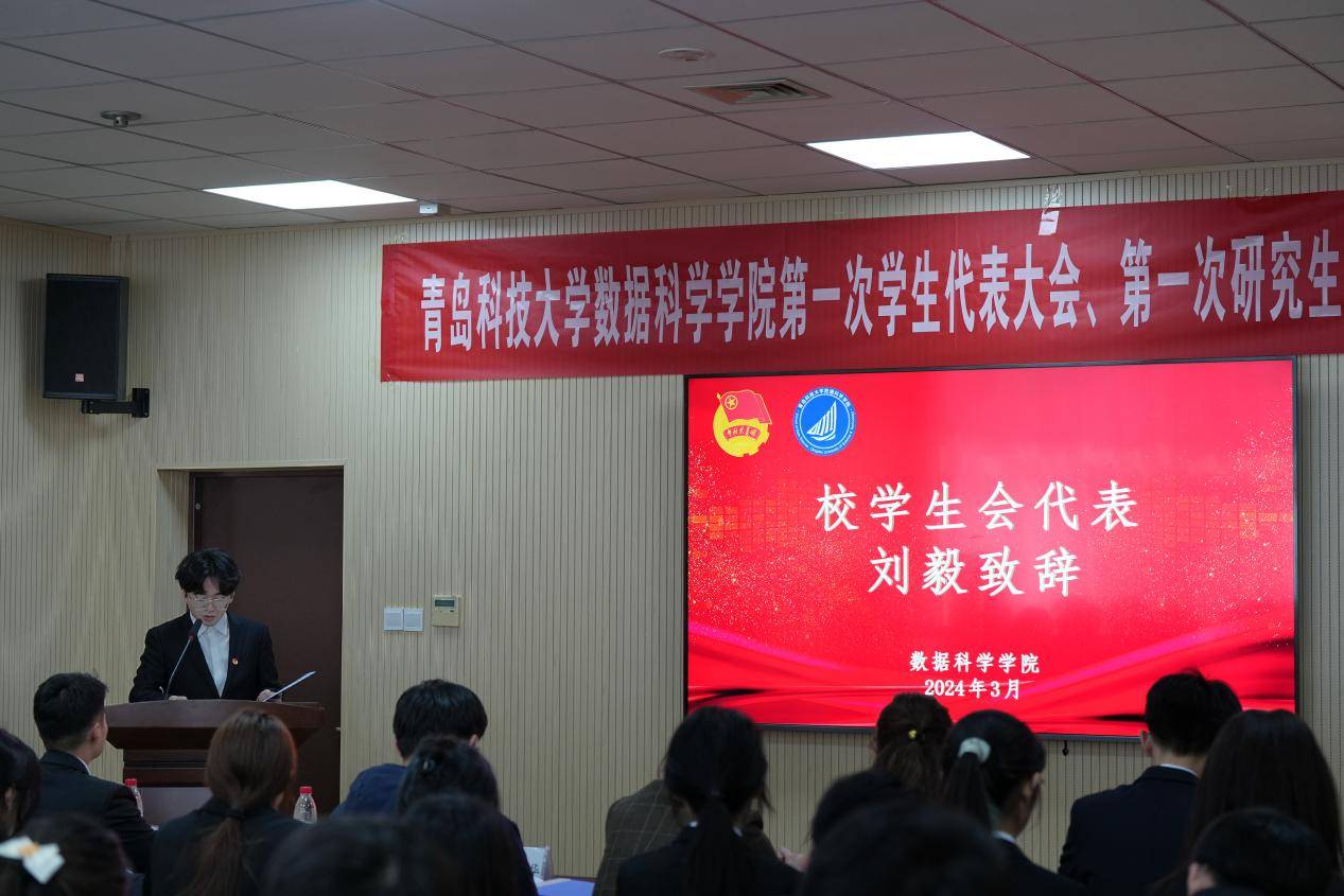 接着大会工作人员宣读了各兄弟学院发来的贺电、贺信。朗鑫臻代表兄弟学院高、刘毅代表校学生会分别致贺词,预祝星空XK官网第一次学生代表大会、第一次研究生代表大会顺利召开,圆满成功。