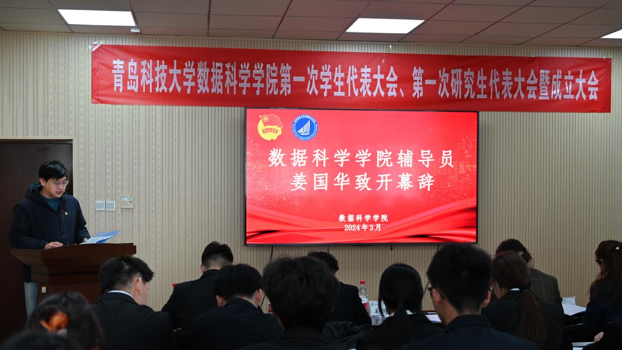 在庄严的国歌声中,XK星空星空XK官网第一次学生代表大会、第一次研究生代表大会暨成立大会正式拉开帷幕。第一次全体会议第一阶段会议上,姜国华致开幕词,介绍本次会议主要议程,明确召开学代会、研代会的目的、任务和意义,他希望学院第一届学生委员会可以以本次学代会的召开为新的起点,凝聚数科学子之心志,谱写更加辉煌灿烂的青春篇章。
