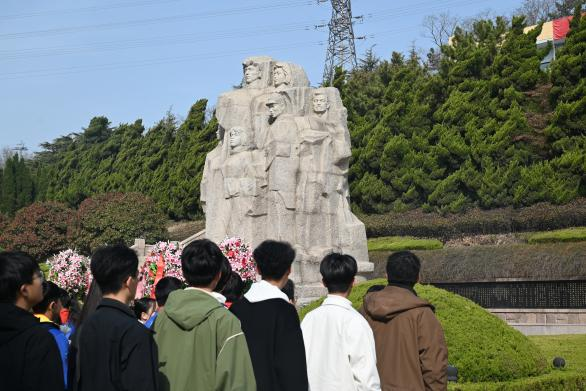在高大的英烈纪念雕塑前,同学们怀着沉重的心情参加了缅怀革命先烈的集体悼念仪式。仪式结束,同学们前往英魂馆、信仰之光展厅、抗战馆进行参观,仔细聆听展馆讲解员讲述人民解放军英勇抗战的事迹,循着中国革命、建设、改革与发展的脉络,感悟先贤为了理想和信念不屈不挠、英勇牺牲的信仰力量。