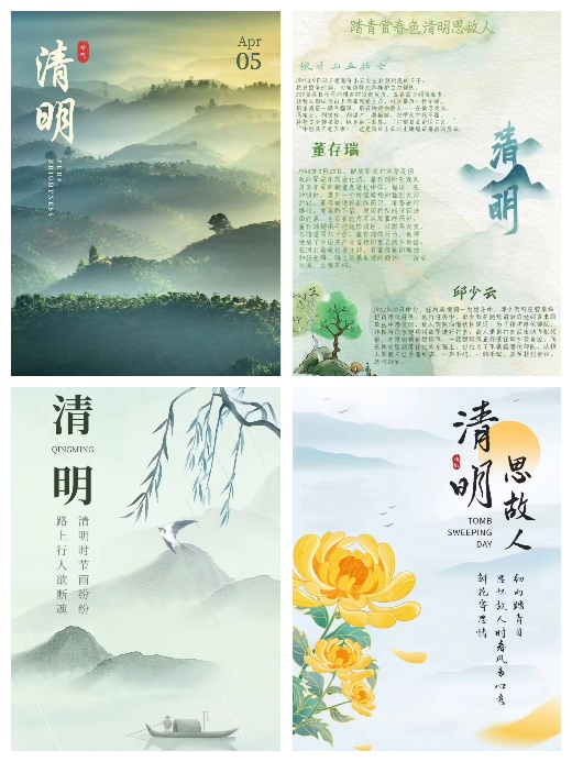 清明创作多元开展,展现文化丰富内涵。学院举办“踏青赏春色,清明思故人”活动,鼓励同学们以清明为主题,用文字、绘画、摄影等多种方式进行参与,激发同学们的创新思维和艺术创作能力,用多元艺术形式展现了清明的丰富意义和内涵。