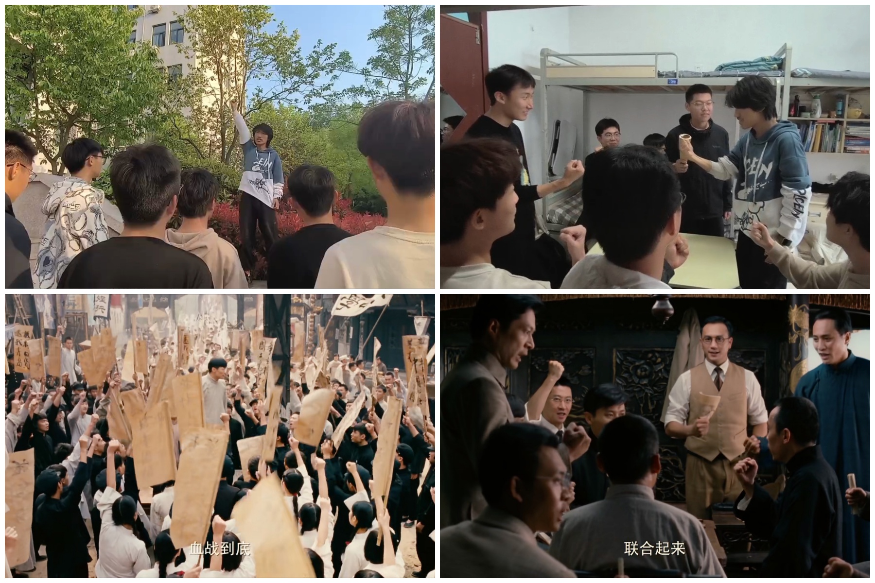 岁月流转,精神永存。星空XK官网充分调研当下学生喜闻乐见的活动方式,举办“青春回响·‘五四’精神站位复刻活动”。数科学子通过跨越时空的转场手法,录制转场视频,复刻中国近代史名场面、红色影视作品经典镜头,将历史画面与现代相结合,实现了穿越时空的对话。用镜头记录历史,用情感连接现代与未来,表达了数科学子对祖国的热爱,发出属于当代青年人的独特声音。