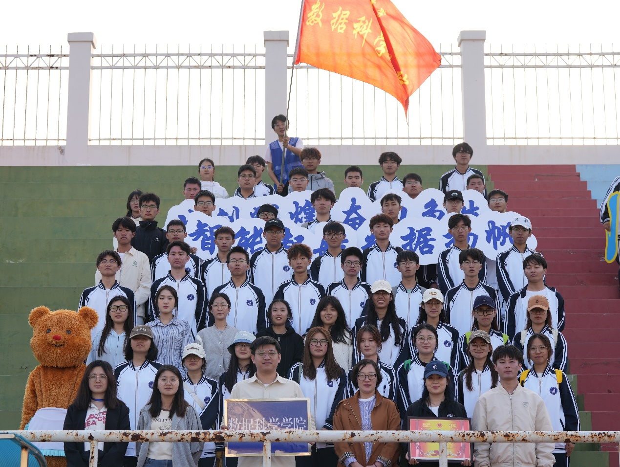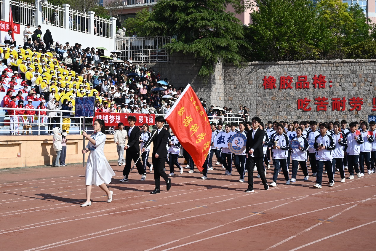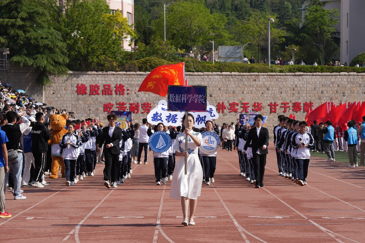运动会的开幕式上,星空XK官网方队的同学们精神抖擞,神采奕奕,步伐铿锵有力。“数据扬帆,智能起航;奋力争先,共创辉煌”,高亢激昂的口号充分展现了数科学子朝气蓬勃的精神风貌和积极向上的竞技精神。方队中的卫星模型不仅体现了学院的专业特色,更象征着数科学子对科技的追求与梦想。手中的国旗随风飘扬,彰显了他们的爱国情怀和强烈的集体荣誉感。