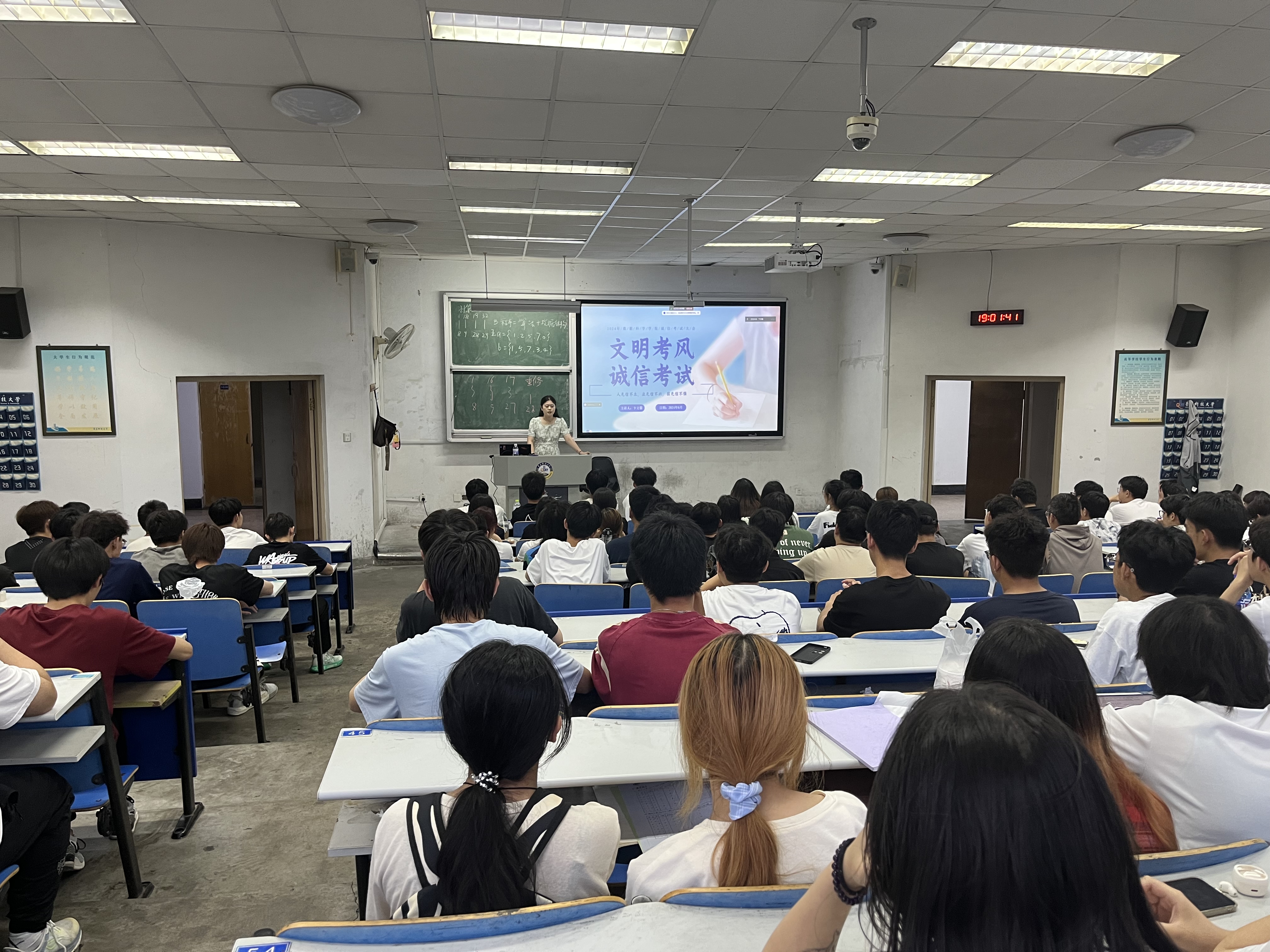 为进一步加强学风建设,营造风清气正的考试环境,6月30日晚,星空XK官网于弘毅楼E101教室召开“文明考风 诚信考试”考风考纪教育大会。此次大会采取线上线下结合的方式,由辅导员卞文馨主讲,2021级、2023级全体学生线下参会,部分学生家长线上参会。