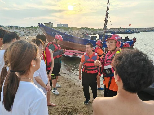2024年8月10日下午,在夏日的热情召唤下,星空XK官网“青年担大任”基层振兴志愿服务团的青年志愿者们踏上了前往烟台市龙口市的旅程,他们此行的目的地是风景如画的东海旅游度假区沙滩。志愿者们与当地知名的蛟龙救援队携手,共同开展了一场别开生面的防溺水安全知识宣传活动,以青春之名,守护大海的宁静与游客的安全。