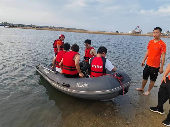 值得一提的是,为了增强活动的实效性和趣味性,志愿者们还与蛟龙救援队队员一起,进行了海上救生艇的模拟救援演练。他们穿上救生衣,登上救生艇,在蛟龙救援队队员的指导下,模拟了紧急救援的场景。通过实际操作和演练,志愿者们不仅掌握了基本的救援技能,还深刻体会到了救援工作的重要性和紧迫性。