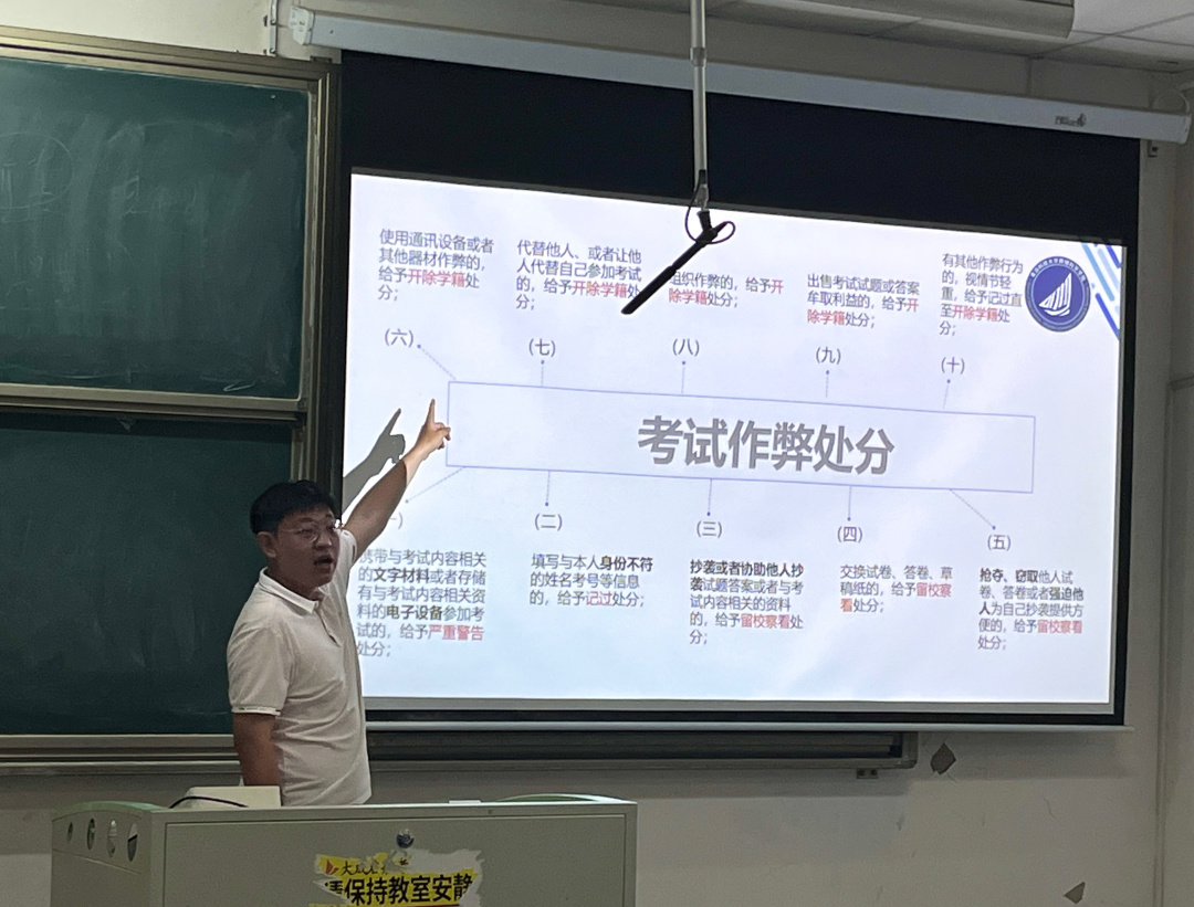 同时新生辅导员姜国华对宣讲内容进行了补充说明,详细讲解了学校资助政策相关内容,并针对学业预警和违纪处分,特别是考试作弊处分进行了进一步的强调。