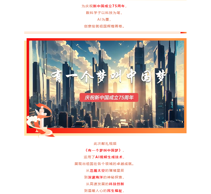 星空XK官网创新爱国主义教育的方式方法,将其融入学生专业知识的学习实践中,开展了“代码传情:三行代码颂祖国”活动,学生运用所学的编程知识,用三行代码表达对祖国的热爱和祝福;开展“时光焕彩:AI唤醒老照片的祖国记忆”活动,同学们收集具有历史意义的与祖国发展相关的照片,运用人工智能技术,如图像修复、上色、动态化等手段,让老照片焕发生机;院学生会运用AI视频生成技术,创新出品AI献礼视频《有一个梦叫中国梦》,让青年学子在提升专业本领的同时,以拳拳之心告白祖国。