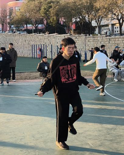 个人速度赛的精彩对决接踵而至。1分钟单摇跳、3分钟单摇跳、30秒双摇跳和30秒间隔交叉跳等个人项目轮番上演,选手们稳定发挥,展现出精湛的跳绳技巧。在激烈的角逐中,大数据231魏建基在30秒单摇跳(双脚轮换跳)获得冠军,大数据221崔卓琛在30秒双摇跳中获得冠军,大数据231王煜腾在30秒间隔交叉跳项目中获得冠军,大数据241班的傅兴哲同学在3分钟单摇跳项目中获得冠军。