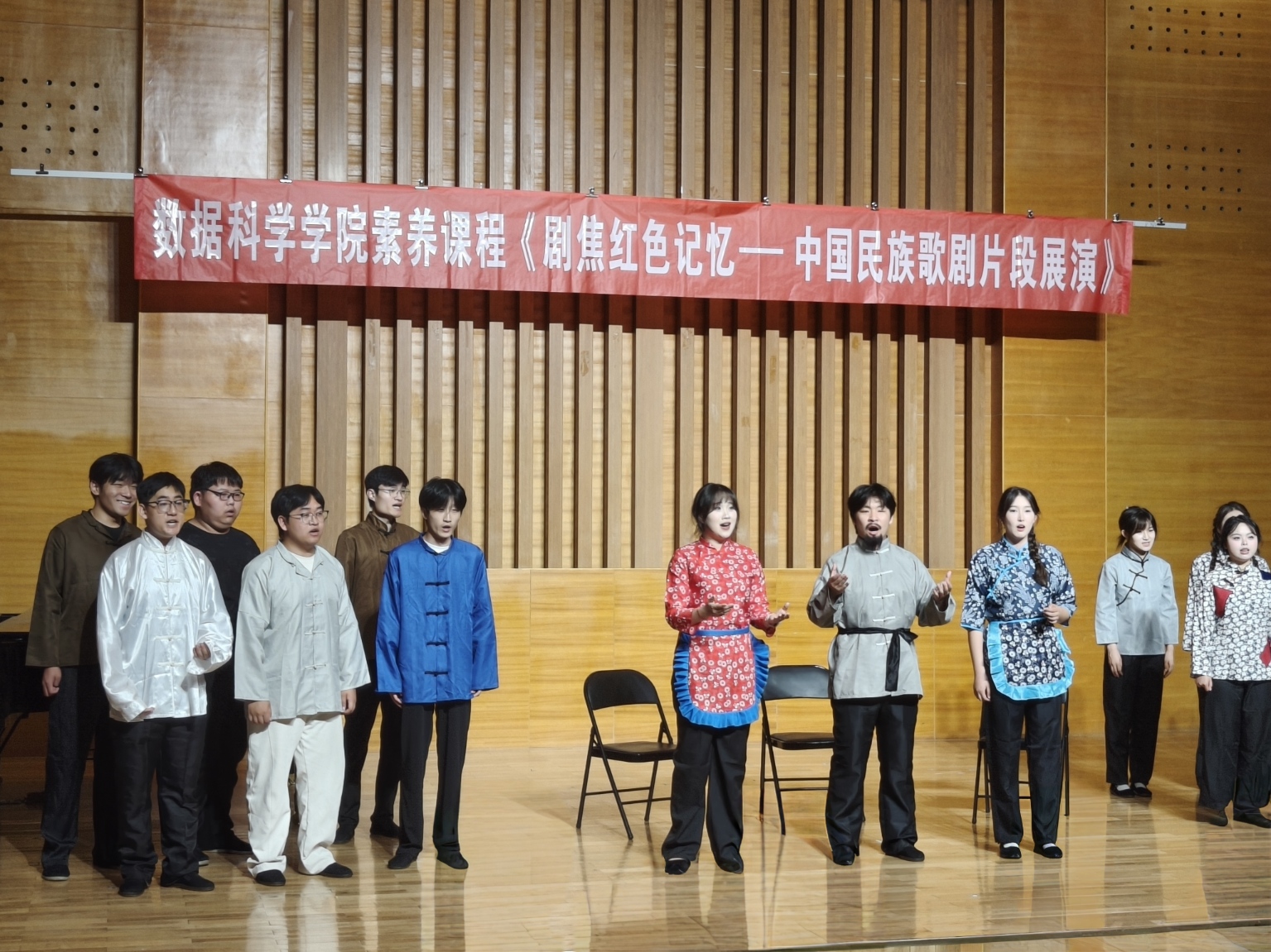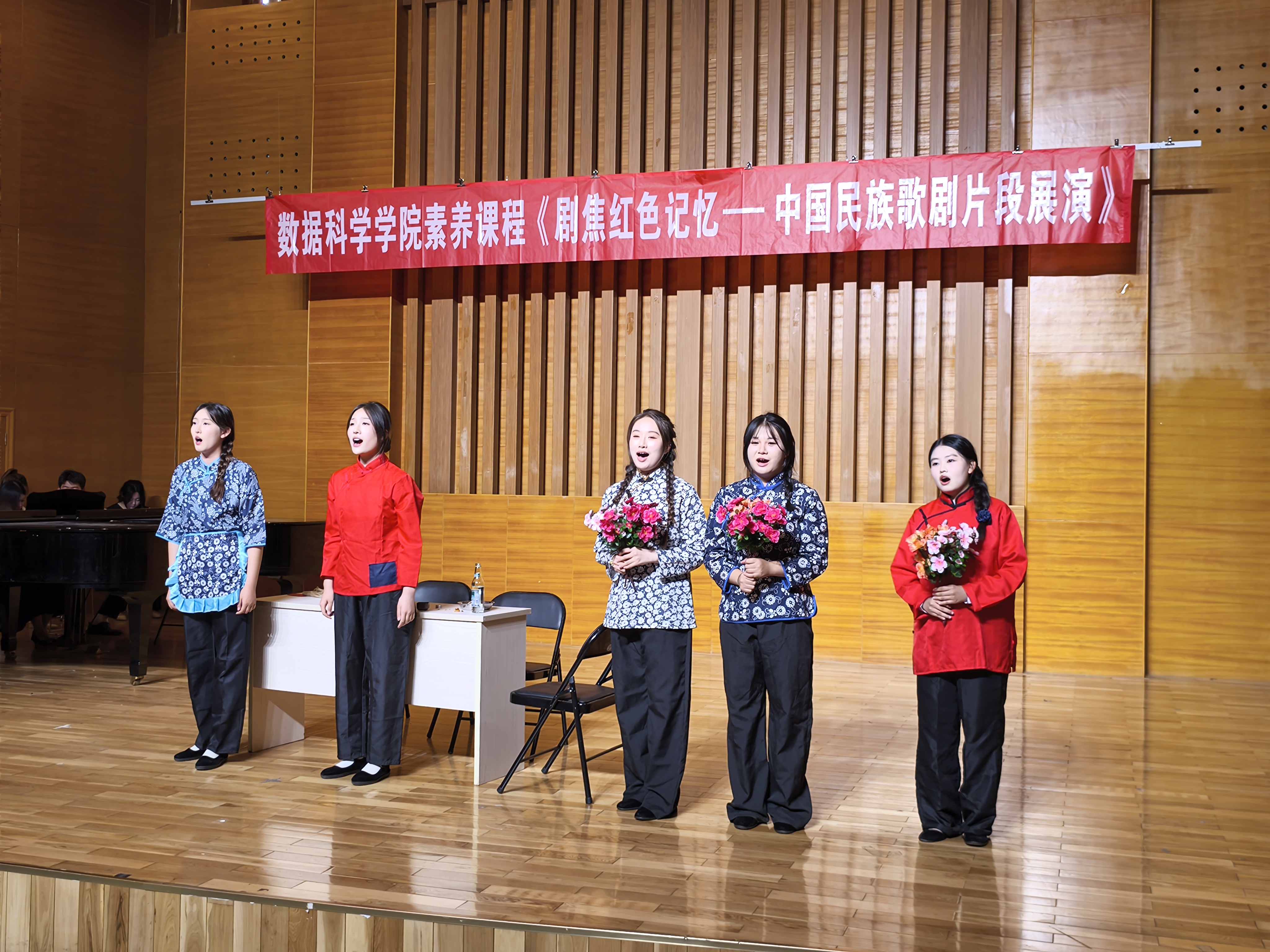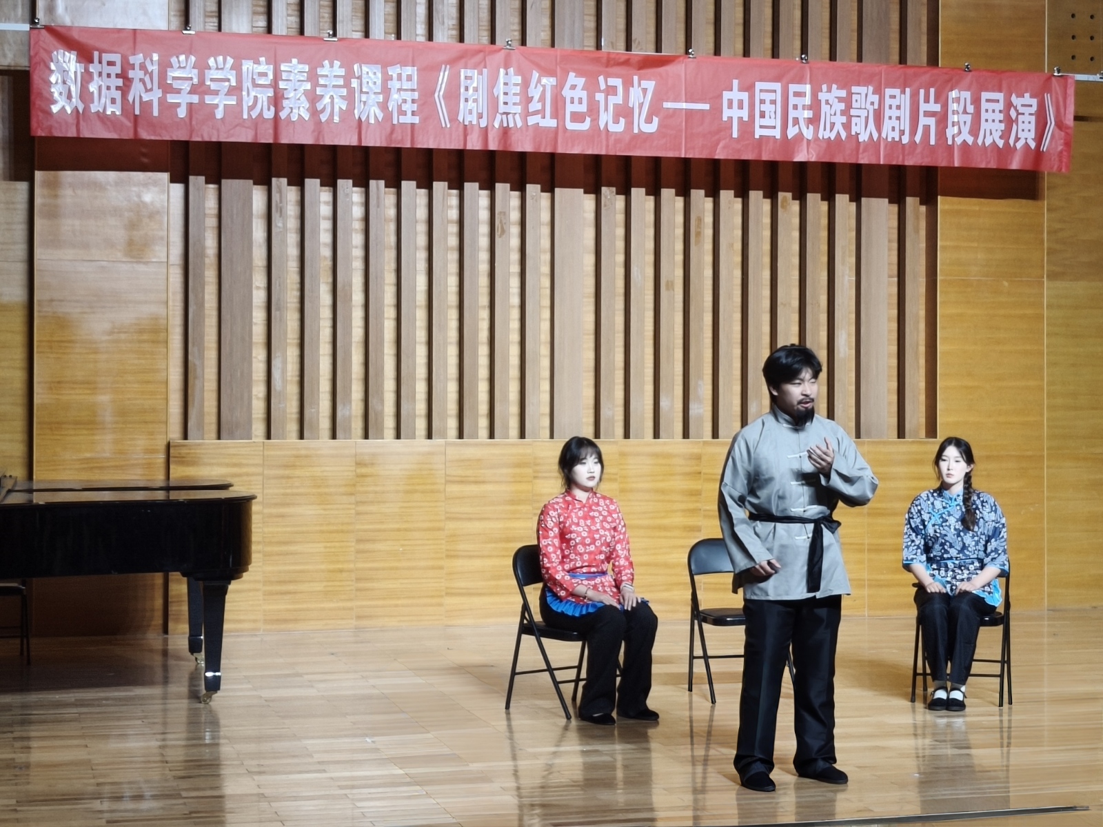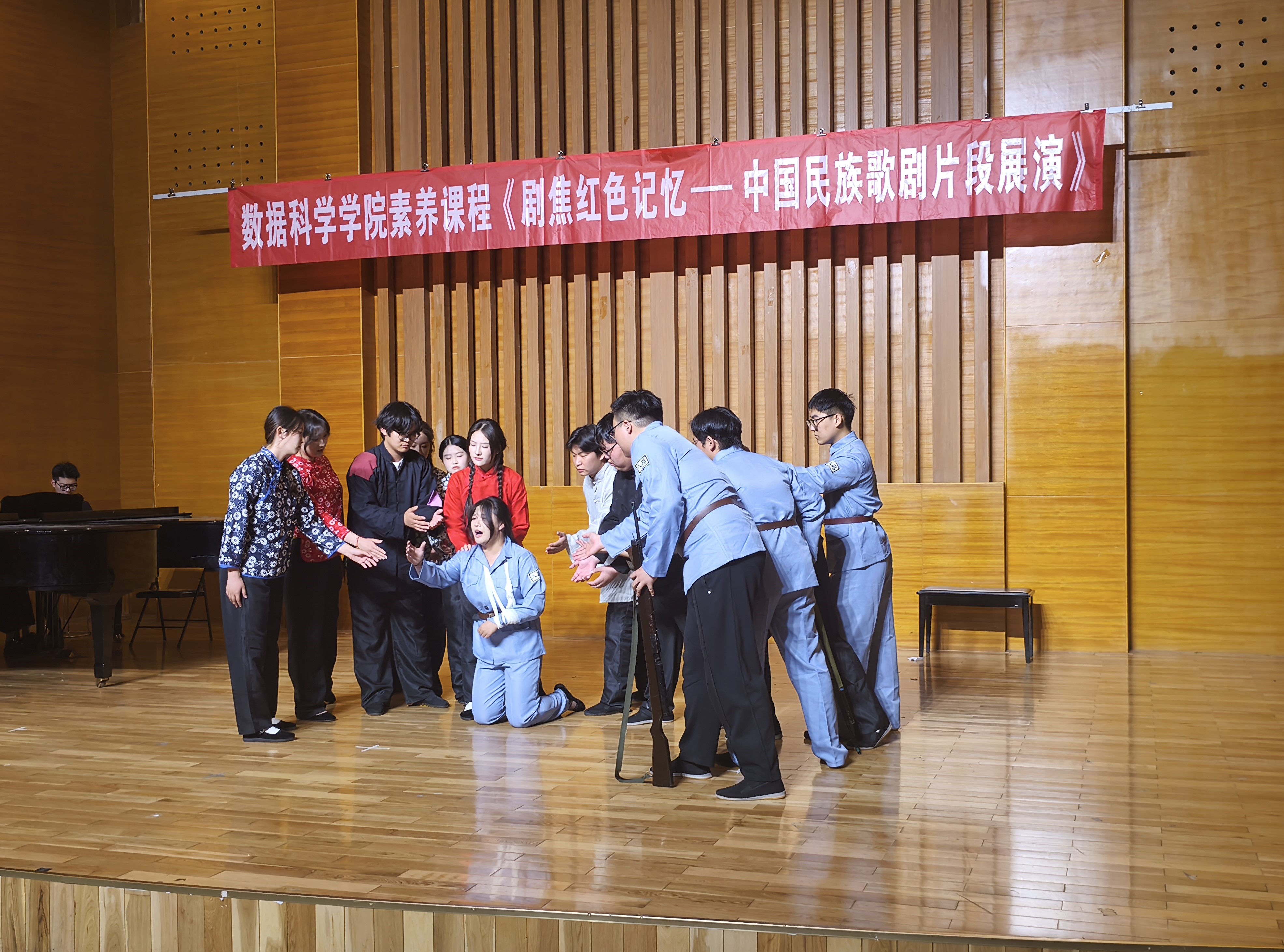 本次展演以中国经典民族歌剧为核心内容,精选《党的女儿》《江姐》《沂蒙山》中的代表性唱段分章呈现,由艺术学院学生倾情演绎,配合钢琴现场伴奏,生动展现了革命先烈在信仰与牺牲中的精神抉择与情感张力。