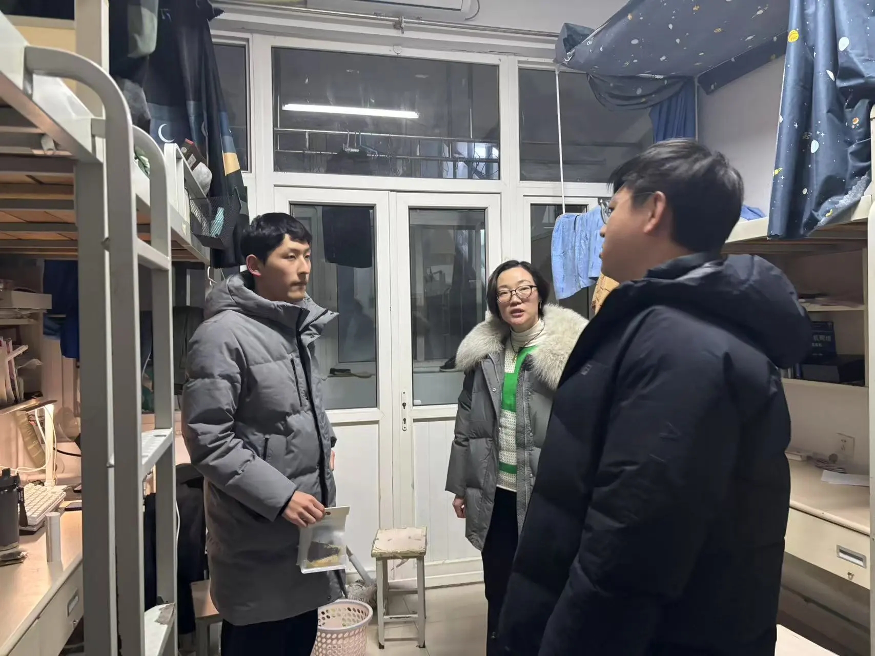 检查过程中,辅导员们重点关注了学生假期离开宿舍后插排是否断电、宿舍卫生清理、物品存放、门窗关闭等情况。学生积极响应学院寒假安全文明离校的号召,宿舍整洁干净,物品摆放收纳整齐,做到文明离校。