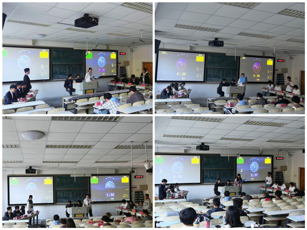 参加辩论赛初赛的队伍分别为大数据231代表一队、大数据231代表二队、大数据232代表一队、大数据232代表二队、人工智能231代表一队、人工智能232代表二队以及22级代表队。初赛围绕“熬夜是现代人的病还是药”“当代人际交往,没话找话和陷入沉默哪个更尴尬”“被误解是不是表达者的宿命”以及“被排斥更可怕还是被同化更可怕”四个辩题依次展开辩论。首先辩手开篇立论,以充满理性色彩的自我论述拉开比赛的序幕,在驳论和自由辩论环节中,双方各持己见,辩手们精辟的措辞和犀利的语言尽显气势。在最后的总结陈词环节中,正反双方再次阐述己方观点并指出对方论点中的漏洞,妙语连珠,旁征博引,一度将比赛推向了高潮。每组辩论赛后,评委针对辩手现场的精彩表现进行了点评,指出了辩手在辩论过程中的优点和不足,并传授了相应的答辩技巧,使他们受益匪浅。