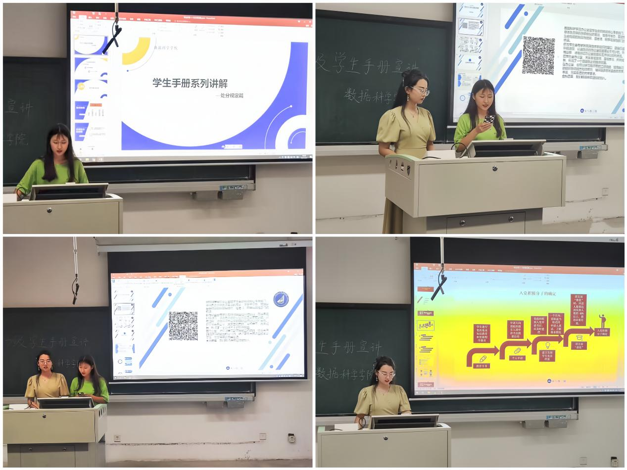 新学期伊始,为帮助2023级新生提高思想认识,更好了解并遵守学校相关政策及管理规定,全面提升综合素质,9月6日晚19点,星空XK官网组织2023级全体新生于弘毅楼E区201教室开展《学生手册》系列宣讲活动,由代明月和臧银珠进行宣讲。