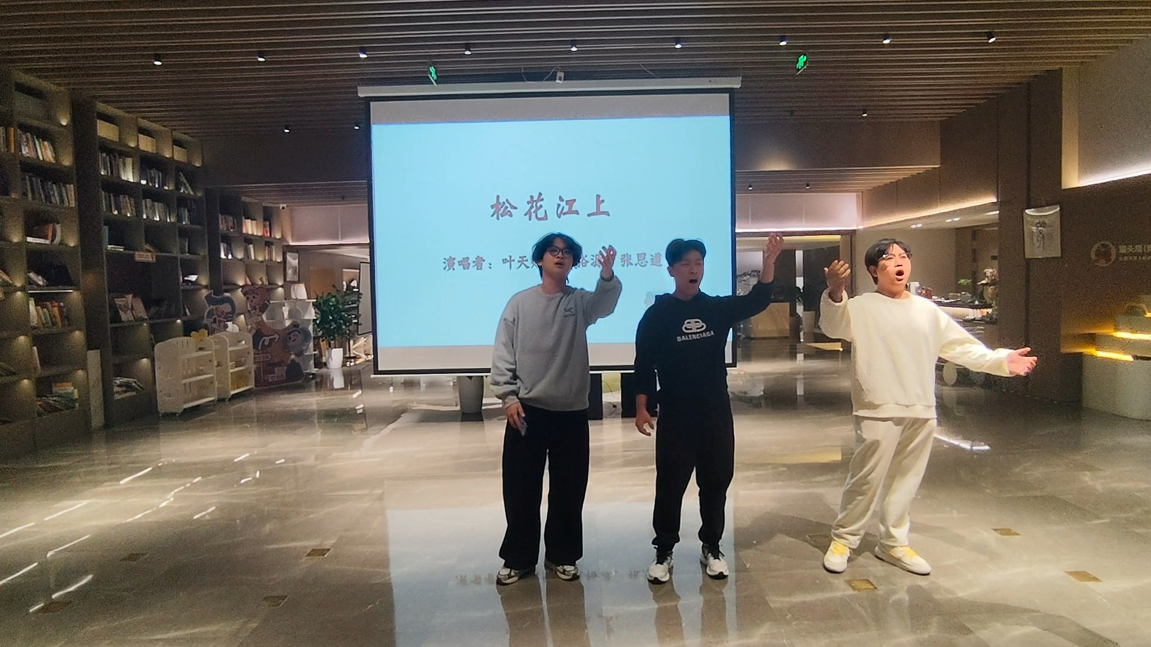 分享环节后,艺术学院叶天赐、崔裕源、张恩道登台演唱《松花江上》《再看一眼亲人》《这份恩情报不完》,深情的演唱为活动增添了浓厚情感氛围。