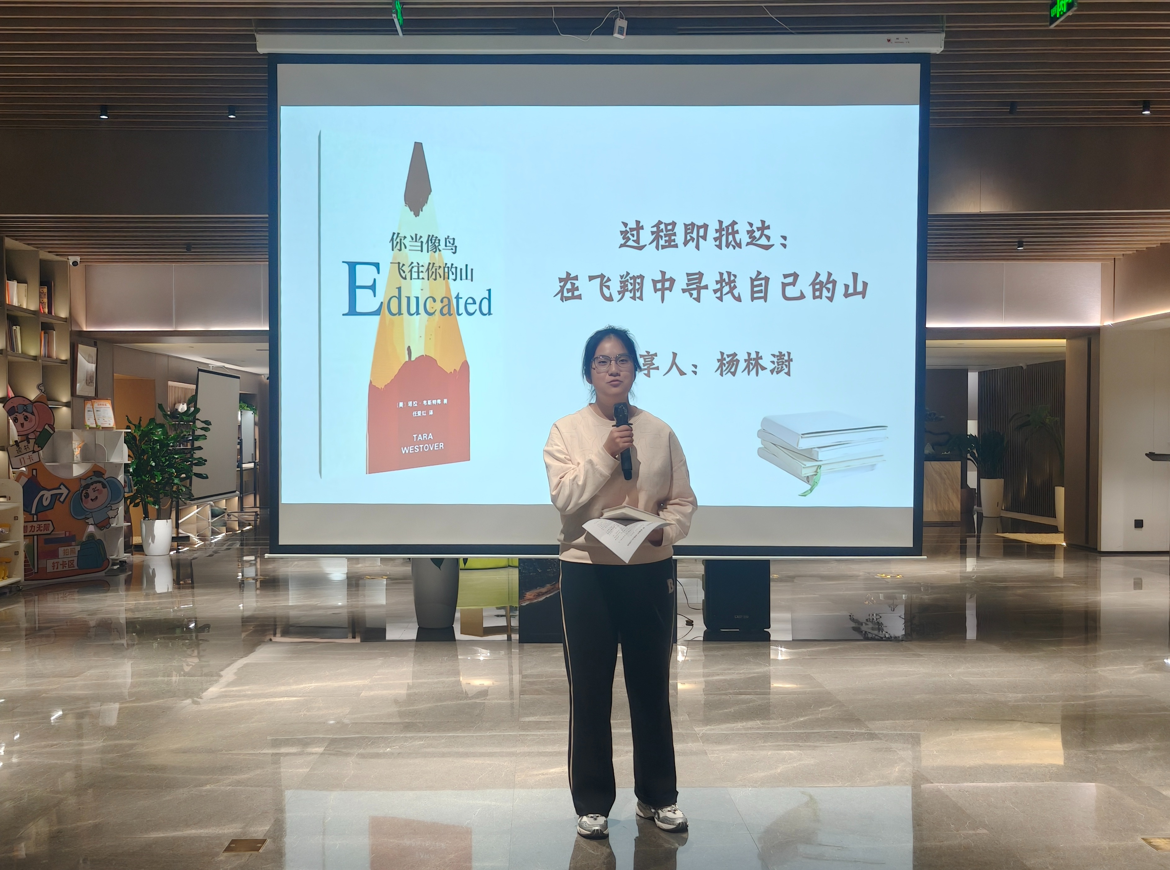 人工智能232班杨林澍以“过程即抵达:在飞翔中寻找自己的山”分享《你当像鸟飞往你的山》,结合主人公挣脱束缚、教育救赎经历,鼓励同学们打破局限、探索自我。