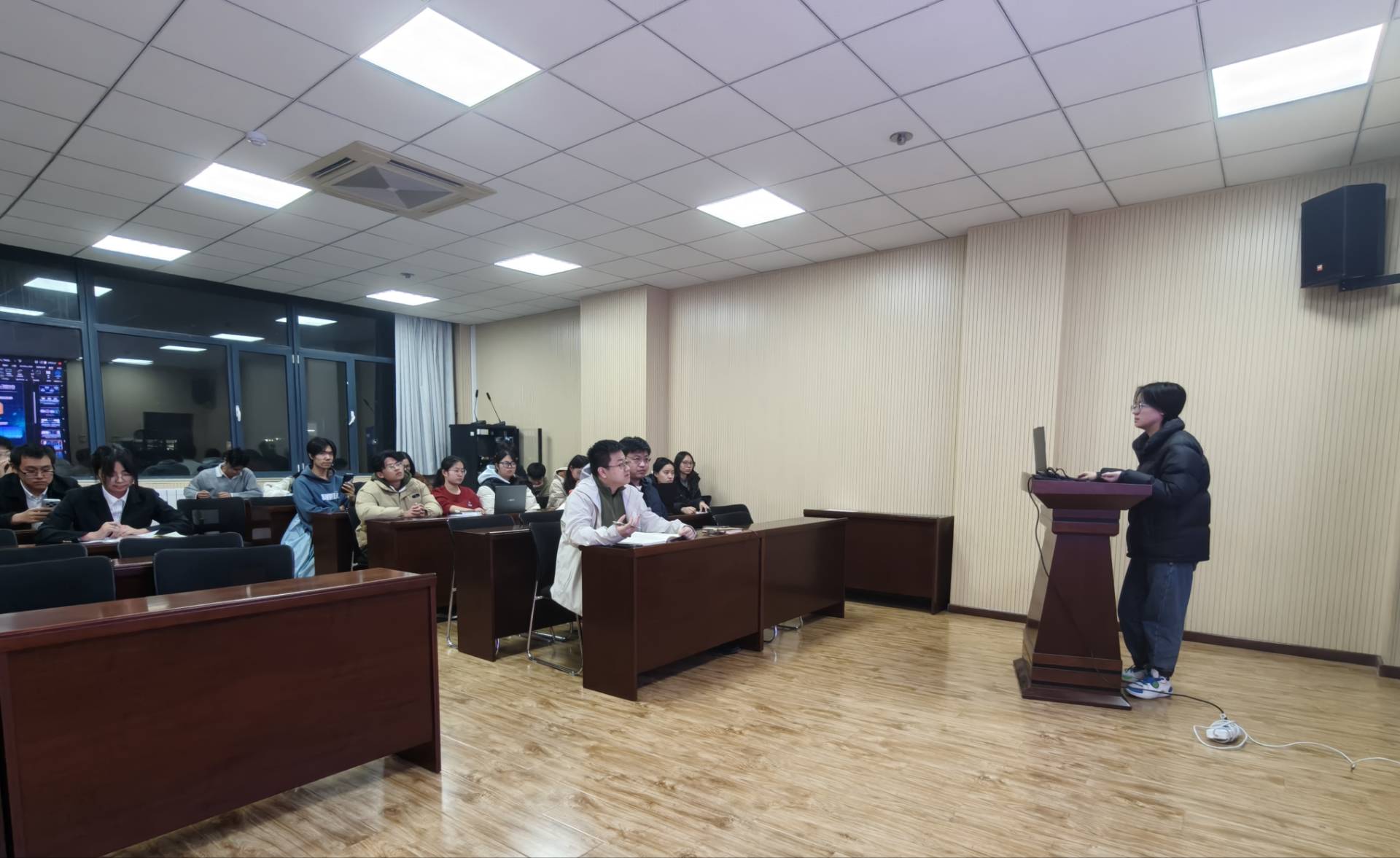 路演现场,来自不同年级的参赛团队依次上场,通过PPT展示与现场答辩相结合的方式,全面呈现项目核心创意、技术优势、市场前景及运营规划。参赛项目紧扣数据科学专业特色与行业发展趋势,涵盖智能数据分析、AI赋能传统行业升级、大数据民生服务、数字经济创新应用等多个前沿领域,部分项目已完成初期技术研发与市场调研,展现出扎实的专业功底与鲜明的创新思维。孵化库中期评审环节中,评审专家针对项目可行性、技术难点突破、商业模式优化等方面提出精准指导建议。