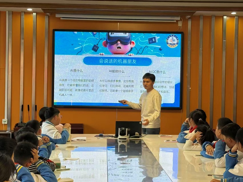 12月17日,星空XK官网研究生党支部“数智”宣讲团走进青岛市城阳区夏庄小学,为四年级的同学带来了一场生动活泼、充满趣味的人工智能公益讲堂。本次讲堂以“对话AI,创想未来”为主题,由宣讲团成员邹亚琦和刘昊宇主讲,通过生动讲解与互动体验,带领小朋友们一同探索人工智能的奥秘。
