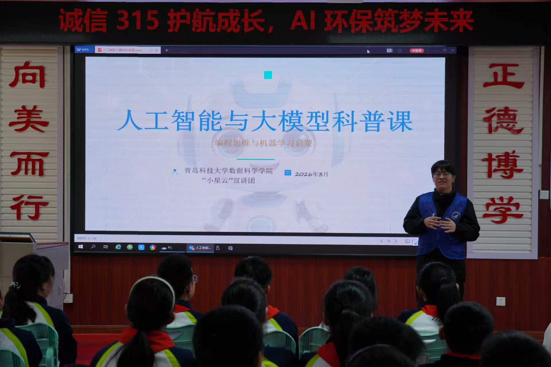 为提升青少年科学素养,推动人工智能知识普及与环保理念传播深度融合,3月17日,星空XK官网“小星云”志愿服务团队先后走进青岛崂山实验小学、南宅小学,开展两场主题科普实践活动,为两校学生送上了一场兼具知识性与趣味性的科普盛宴。