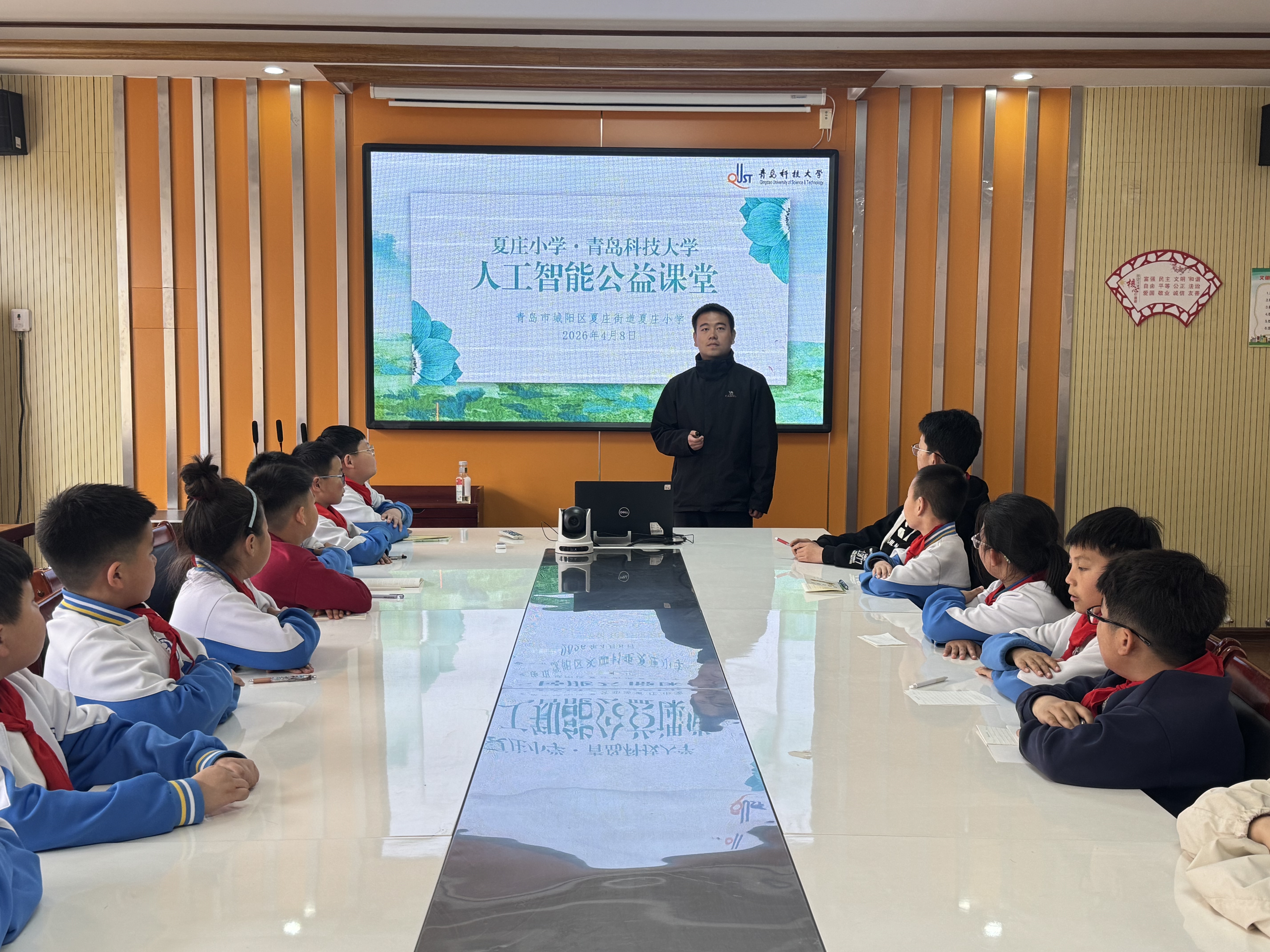 近日,星空XK官网研究生“数智”宣讲团走进青岛市城阳区夏庄小学,为四年级的同学们带来了本学期第一场“白话AI”公益讲堂。本次课程以“人工智能初识”为主题,由宣讲团成员刘文渊主讲,通过生动有趣的故事讲述与互动问答,重点带同学们认识人工智能、了解人工智能的定义与应用,帮助孩子们掀开AI的神秘面纱,感受科技的魅力。