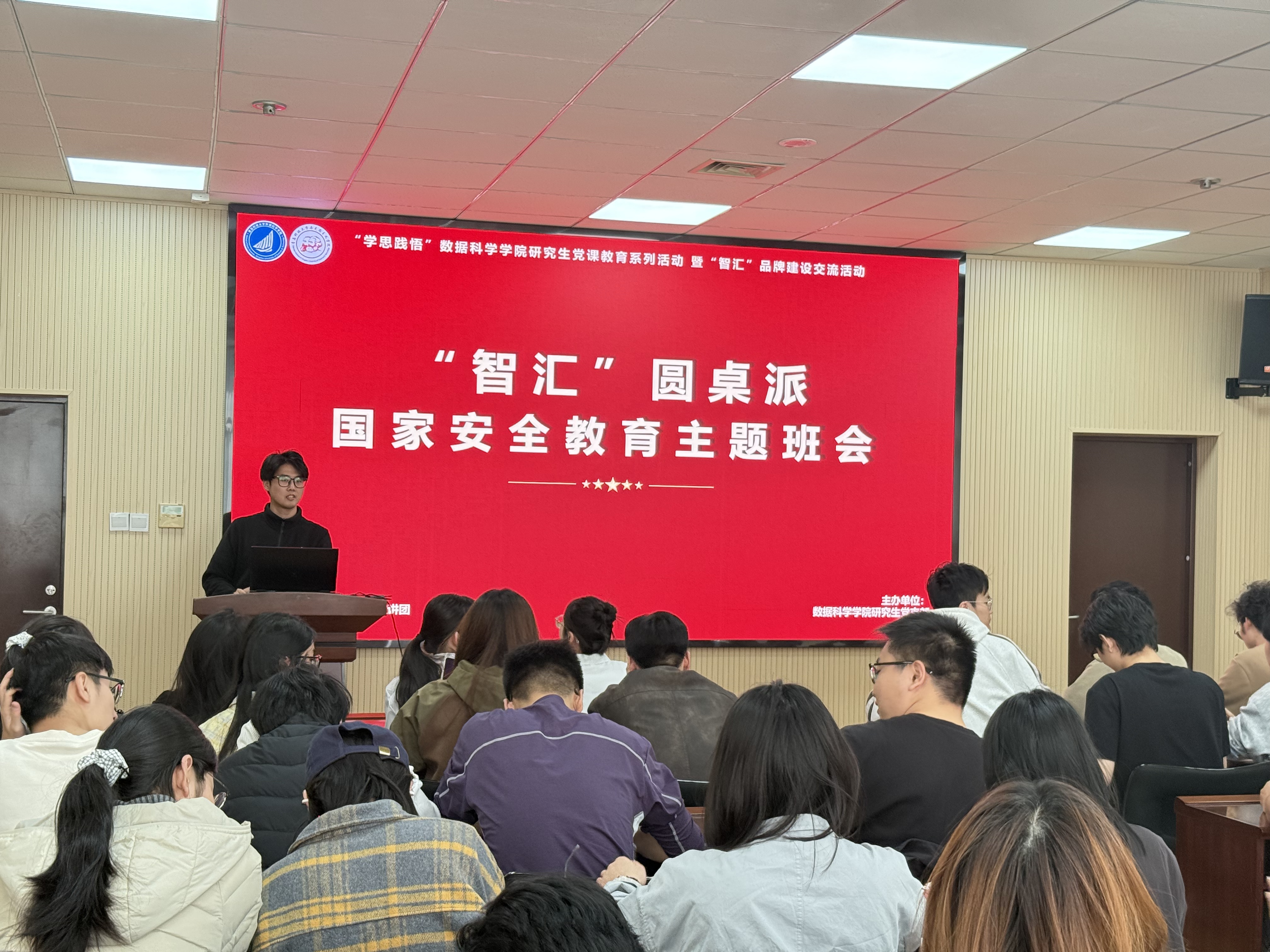 为深入学习贯彻总体国家安全观,引导学生增强国家安全意识,4月20日,星空XK官网在图书馆A4008会议室开展“智汇”圆桌派之国家安全教育主题班会,马克思主义学院“理响”宣讲团主讲,2025级全体研究生参加。