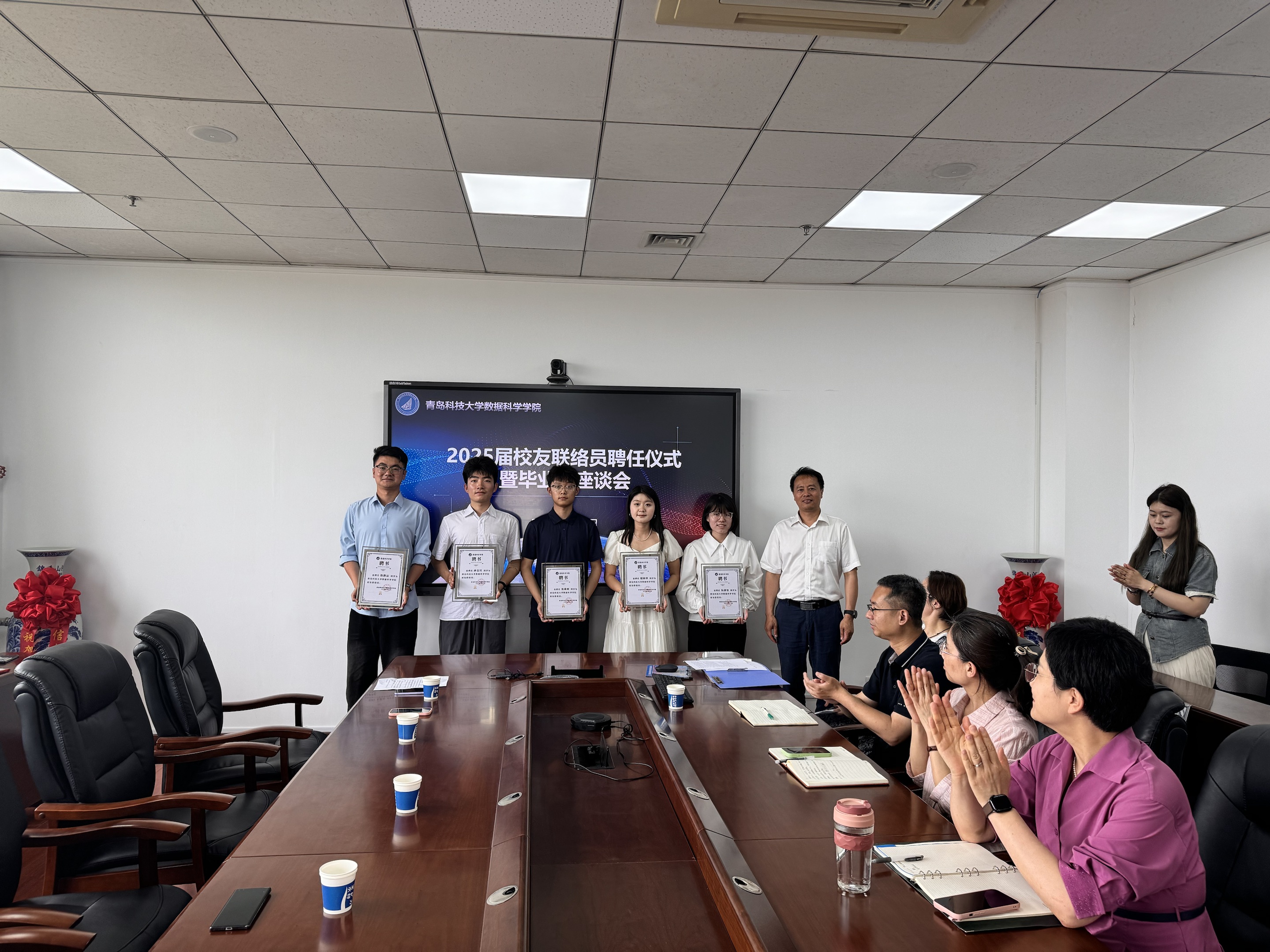 6月13日下午,星空XK官网在图书馆A区5004举办2025届校友联络员聘任仪式暨毕业生座谈会。此次活动由学院党总支副书记兼副院长顾姗姗主持,党总支书记张玉,常务副院长杜军威,副院长张淑军、李辉,各专业负责人以及毕业生代表共同参与。