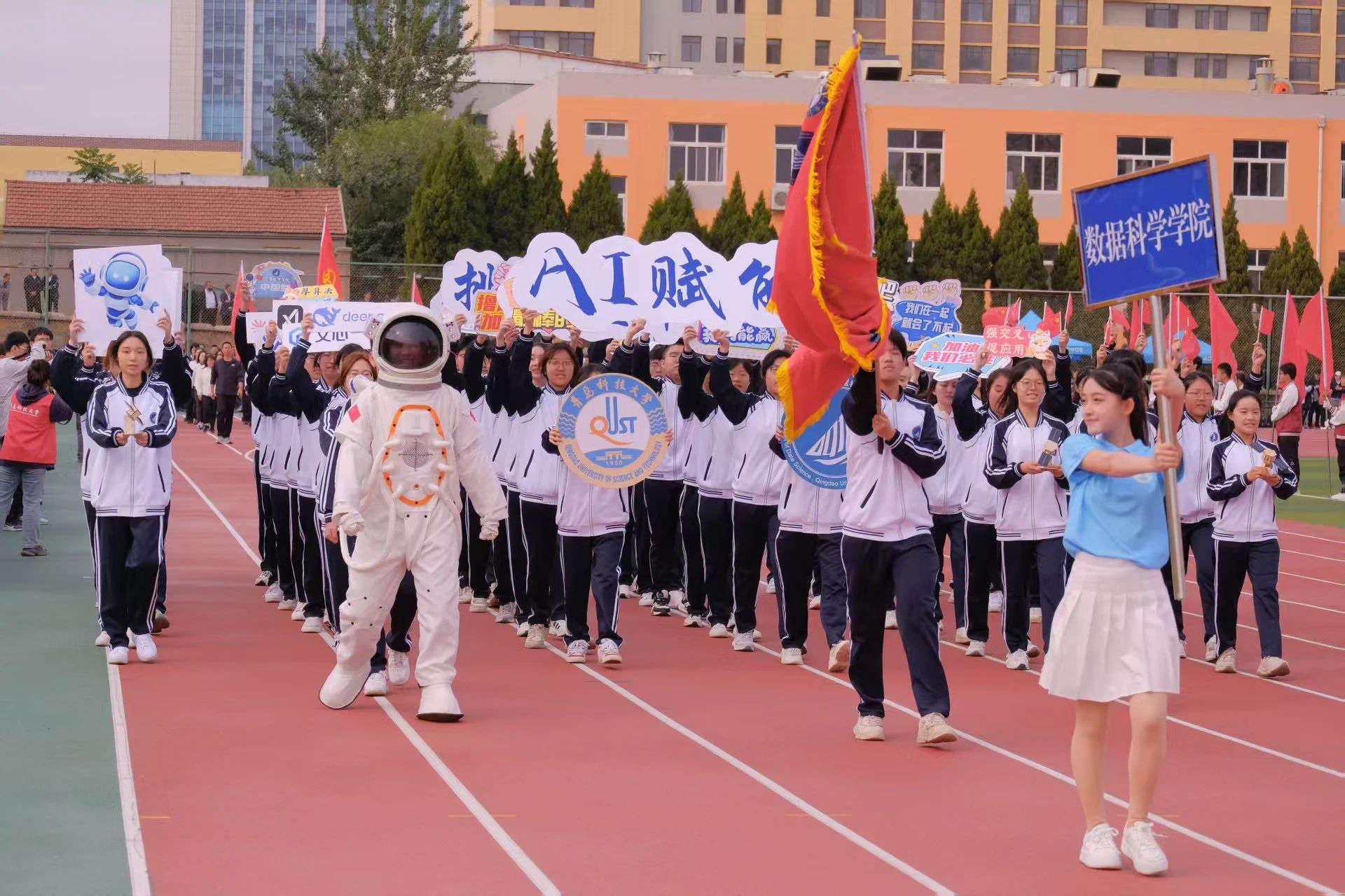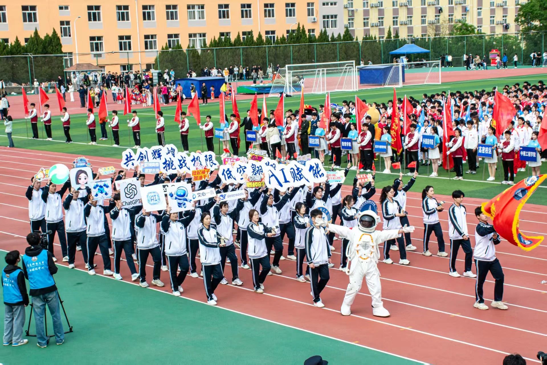 在庄严的开幕式中,星空XK官网方队迈着整齐划一的步伐踏入赛场。他们高喊“AI赋能,低空翱翔;挑战极限,共创辉煌”,传达出星空XK官网学子昂扬的精神状态,展现了他们积极进取、不懈拼搏的竞技风采。