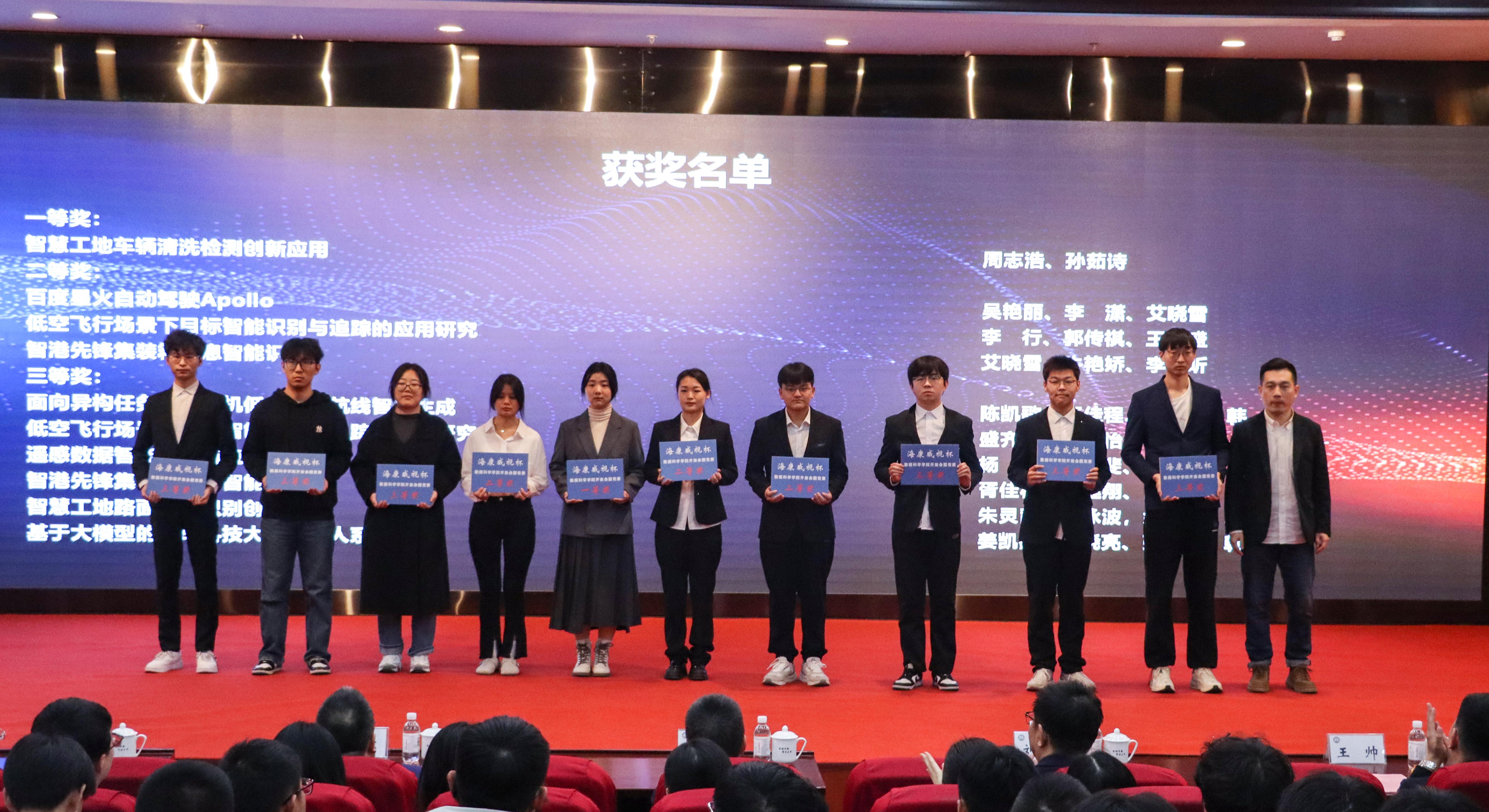 会议展示了“海康威视杯”星空XK官网2024年开放命题竞赛获奖项目,并向获奖团队颁奖。