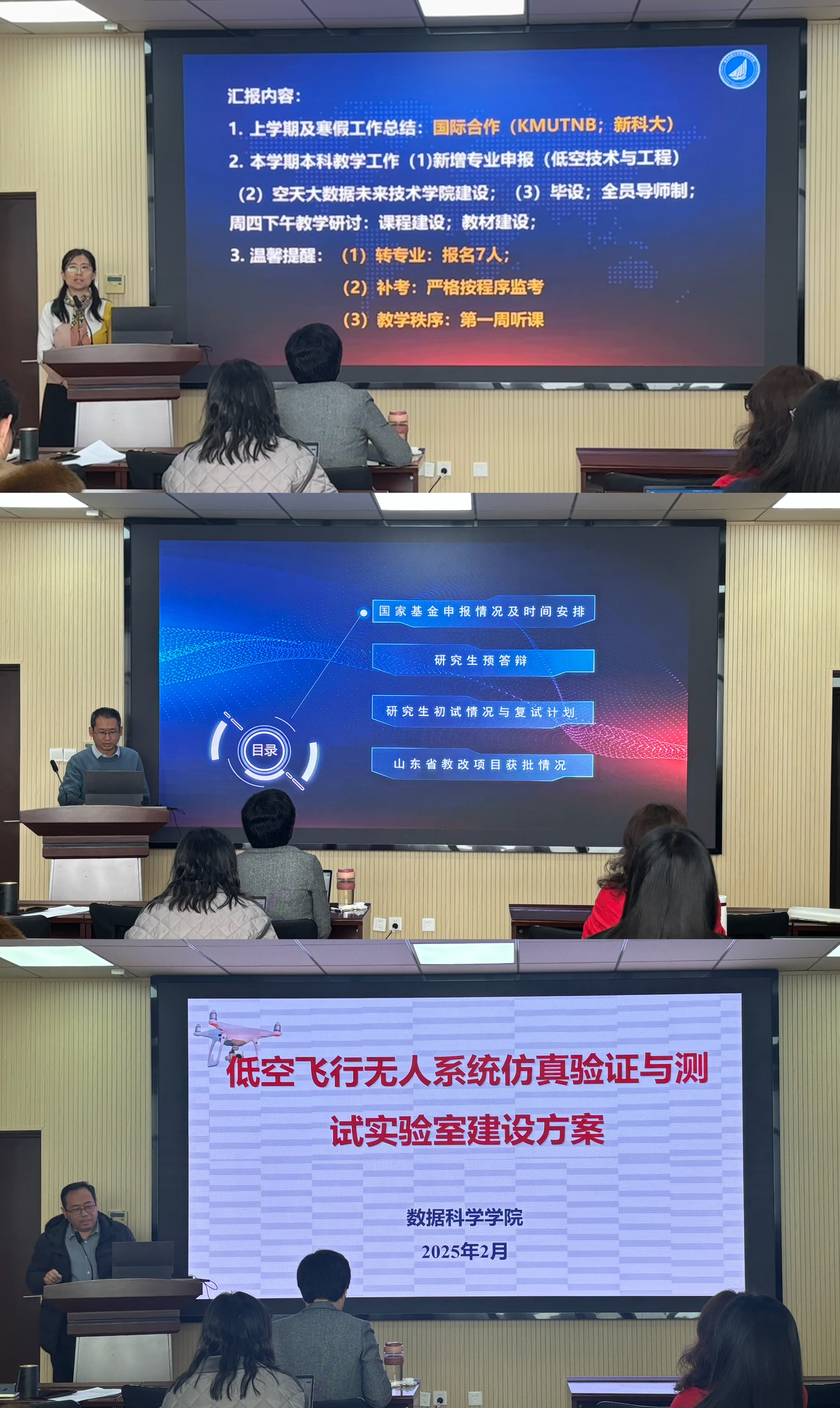 会上,张玉传达了学校2025年工作会议精神和2025年全省教育工作会议精神,带领全体教师学习了杨天梅书记《守正创新 深化改革 攻坚突破 加快建设“特色鲜明、走在前列”的高水平大学》讲话精神。她谈到,全院教师要按照学校党委决策部署,发扬干事创业精神,紧跟时代步伐,抓住学科建设关键期,扭住人才培养关键点,抓特色发展、抓内涵发展、抓创新发展、抓借力发展,为学校811项目建设和“特色鲜明、走在前列”的高水平大学贡献数据学院力量。