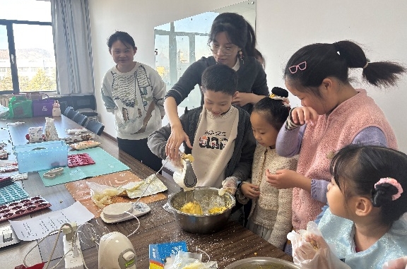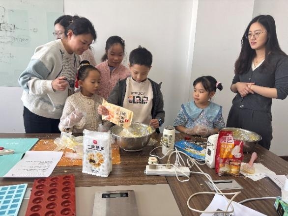 在学院教师高颖的指导下,老师及学院子弟现场制作玛格丽特饼干和坚果巧克力。现场欢声笑语不断,其乐融融。在亲手制作饼干、巧克力的过程中,教职工们不仅体验到了烘焙的乐趣,更在默契配合中加深了彼此的情感纽带。