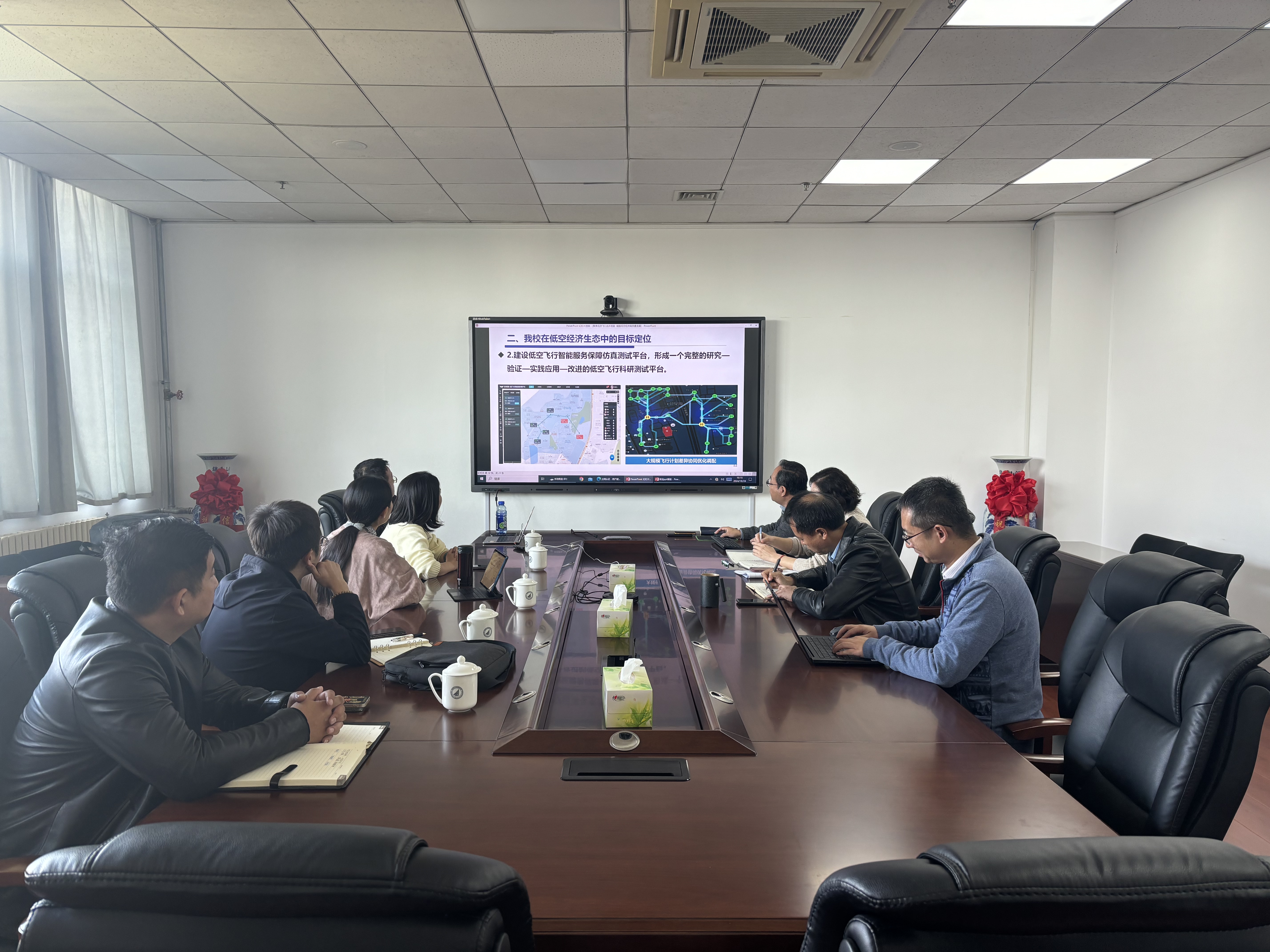 会上,杜军威欢迎刘冰一行的到来并介绍了学院低空飞行和AI for science方面的工作。他希望未来学院能在科学研究、项目合作、学生培养等方面有更深入的交流。