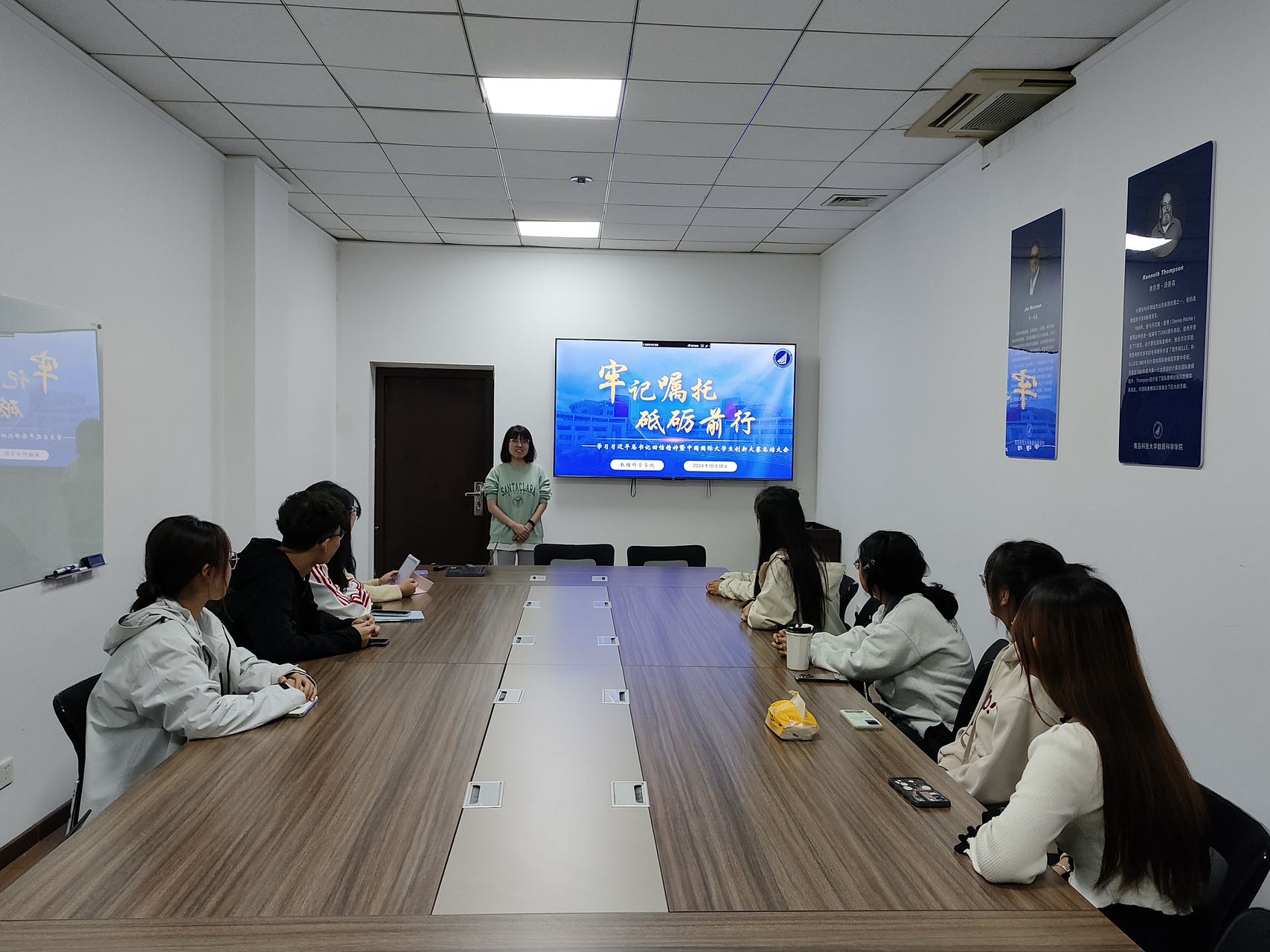 团队成员还就“习近平总书记给中国国际大学生创新大赛参赛学生代表的回信”召开了学习总结会。会上,团队成员们认真学习了习近平总书记的回信内容和中国国际大学生创新大赛冠军作品,并分析总结了团队的优势与不足,深入把握弘扬科学精神,积极投身科技创新的核心要义。团队负责人阮静怡表示,希望团队的每一位成员都能牢记嘱托,砥砺前行,让青春在奋斗中绽放光芒!