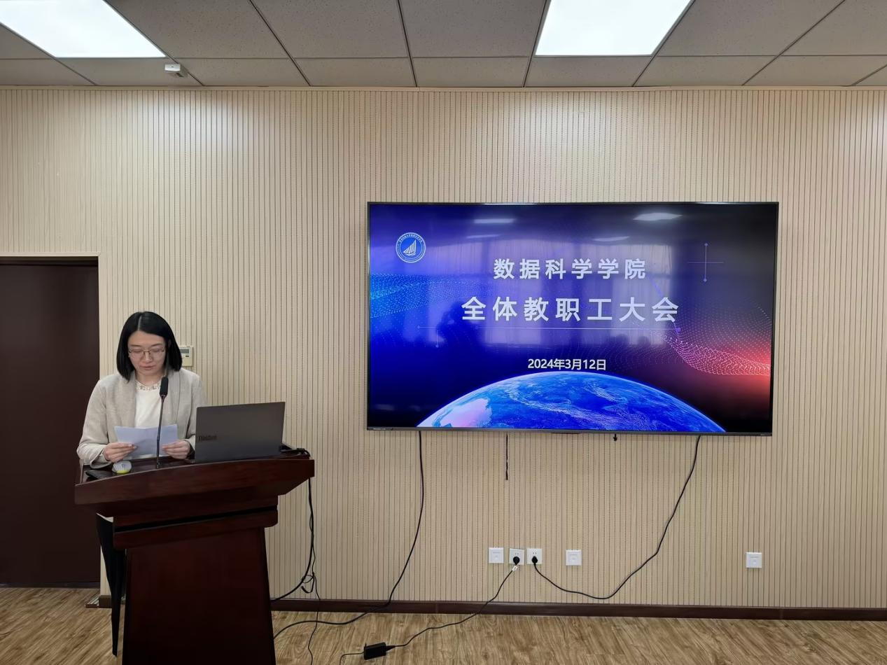 常务副院长杜军威全面传达了学校2024年工作会议暨中层干部培训班相关培训内容,带领全院教职工深入学习了《2024年党政工作要点》。杜军威对学院2024年的工作思路进行了梳理并部署了重点工作。他希望全体教职工要紧密围绕学院新一年的基础性和高质量目标任务,按照学校各项工作的部署,坚定信心,拼搏进取,勇做贡献,为学院2024年度的教学、科研、学生发展等目标任务的顺利完成而团结奋斗。