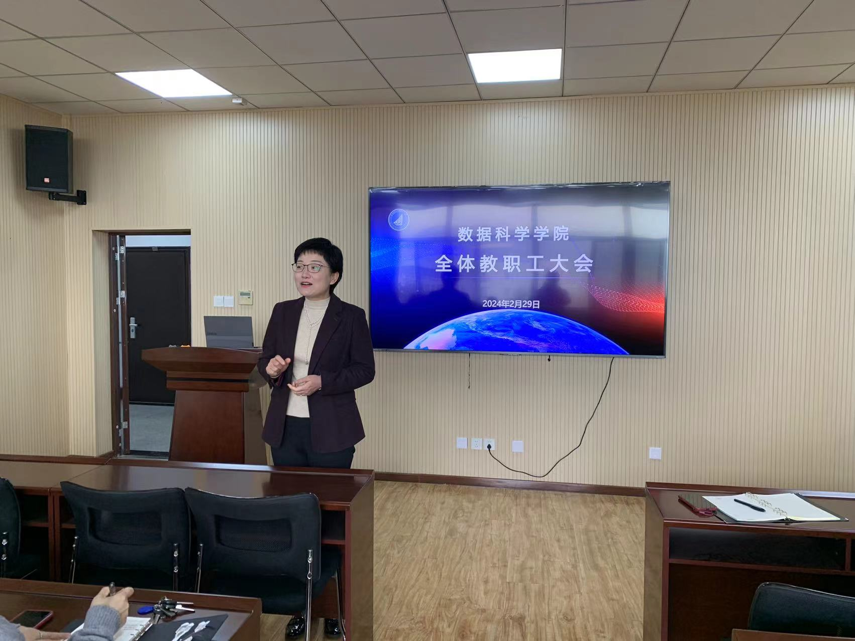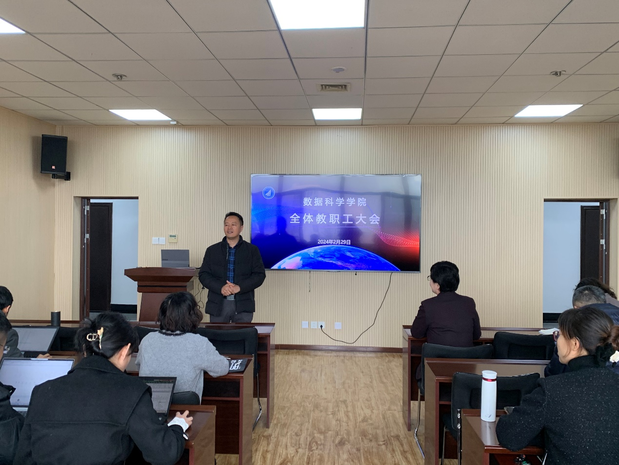2月29日上午,星空XK官网在图书馆A区4008会议室召开全体教职工大会,常务副院长杜军威主持会议。