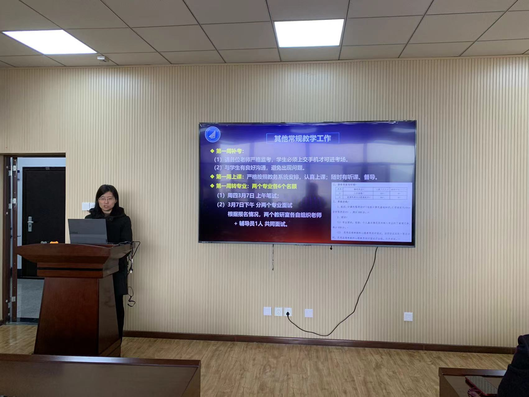 院长助理张淑军详细介绍了毕业实习、毕业设计工作的推进情况,并安排了学期初教学工作。