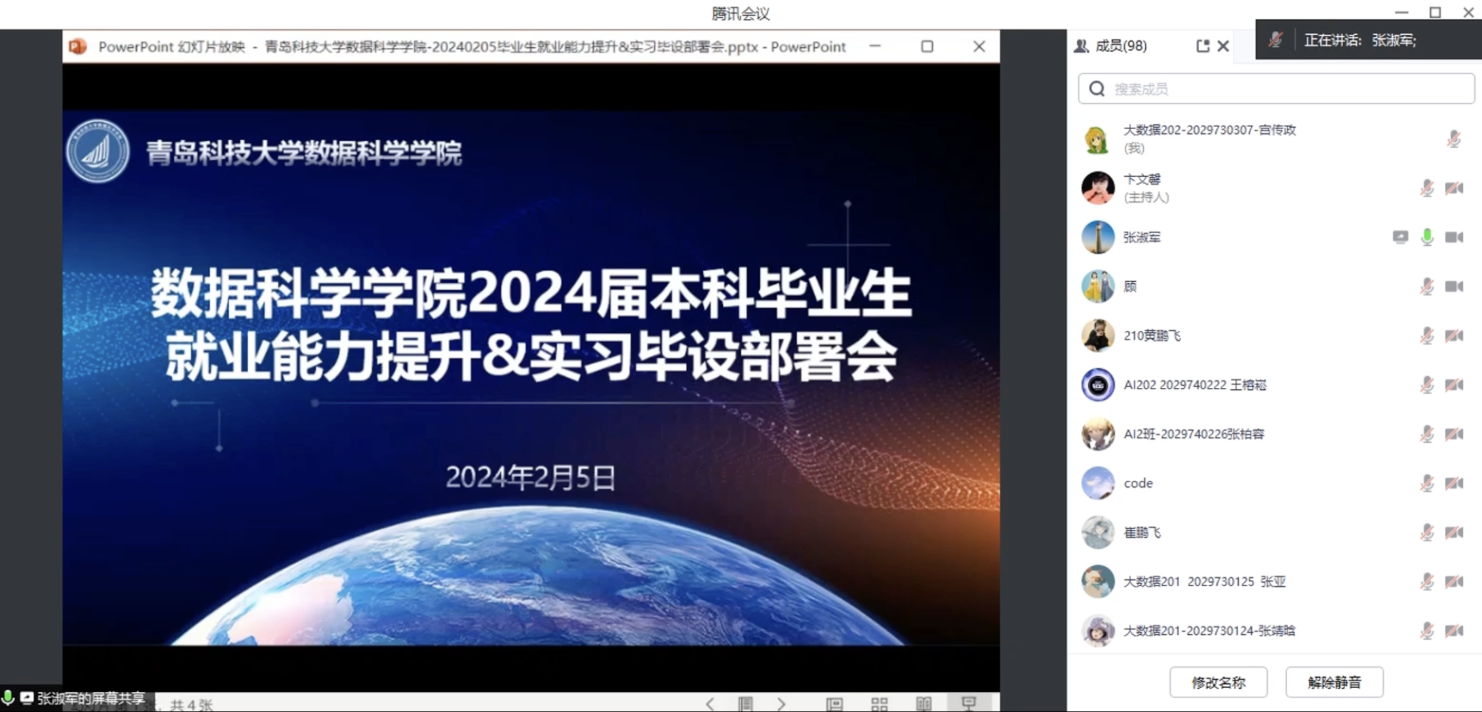 2月5日下午,星空XK官网通过腾讯会议召开2024届本科毕业就业能力提升培训暨实习毕设部署会,学院专职组织员官杰、院长助理张淑军出席会议并部署相关工作,学工办主任兼团委书记顾姗姗主持会议。星空XK官网2024届全体本科毕业生参会。