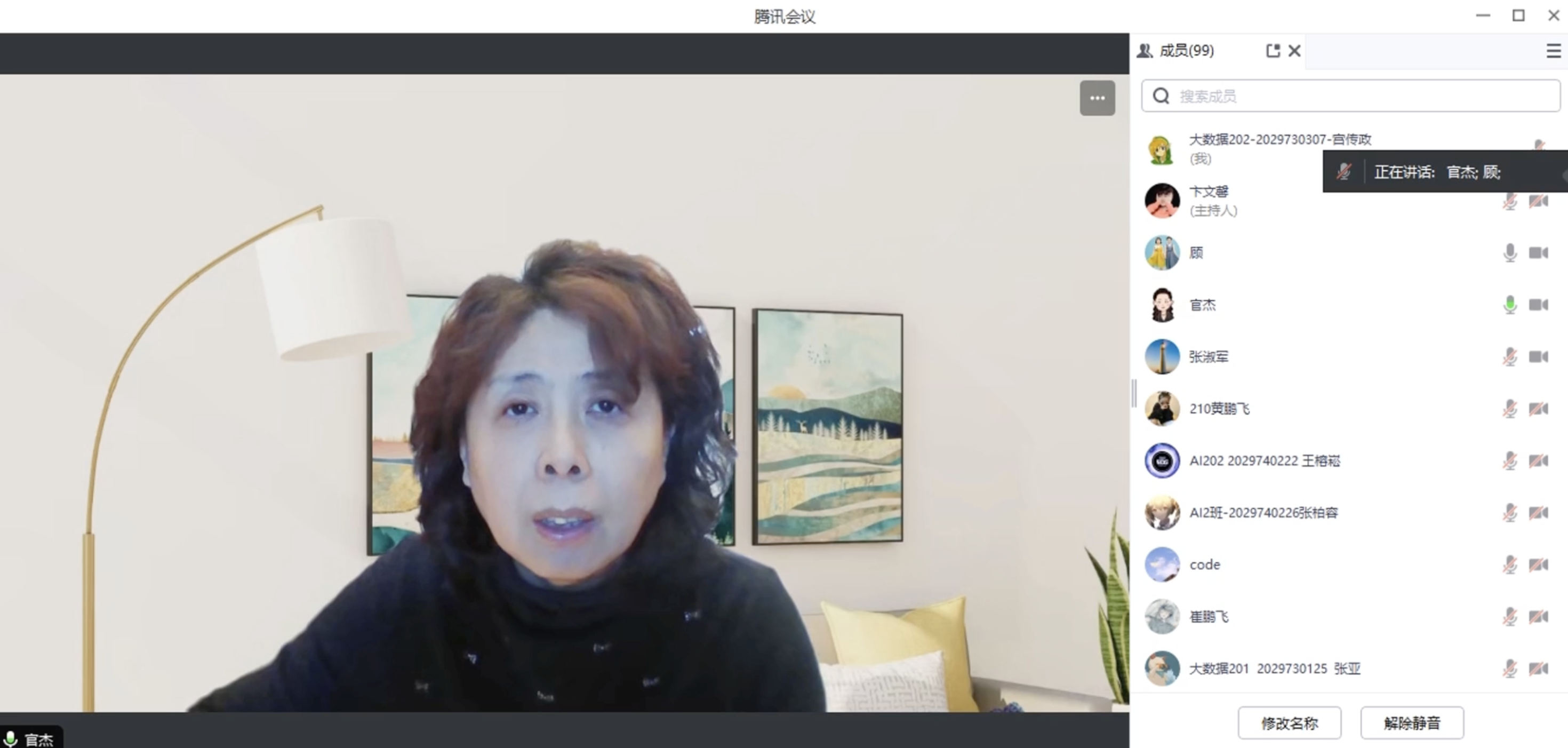 张淑军针对人工智能、大数据两个专业提出了就业能力提升建议,讲述了平台类、数据工程类、应用模型构建等不同类别的岗位需求和技能要求,鼓励学生广泛了解、主动学习,根据岗位需求完善修改简历。同时,张淑军讲解了本科最后一学期的学习安排和毕业要求。
