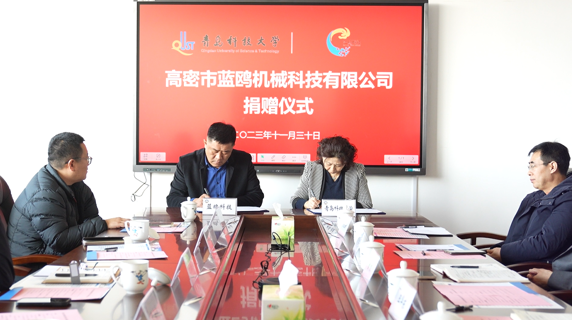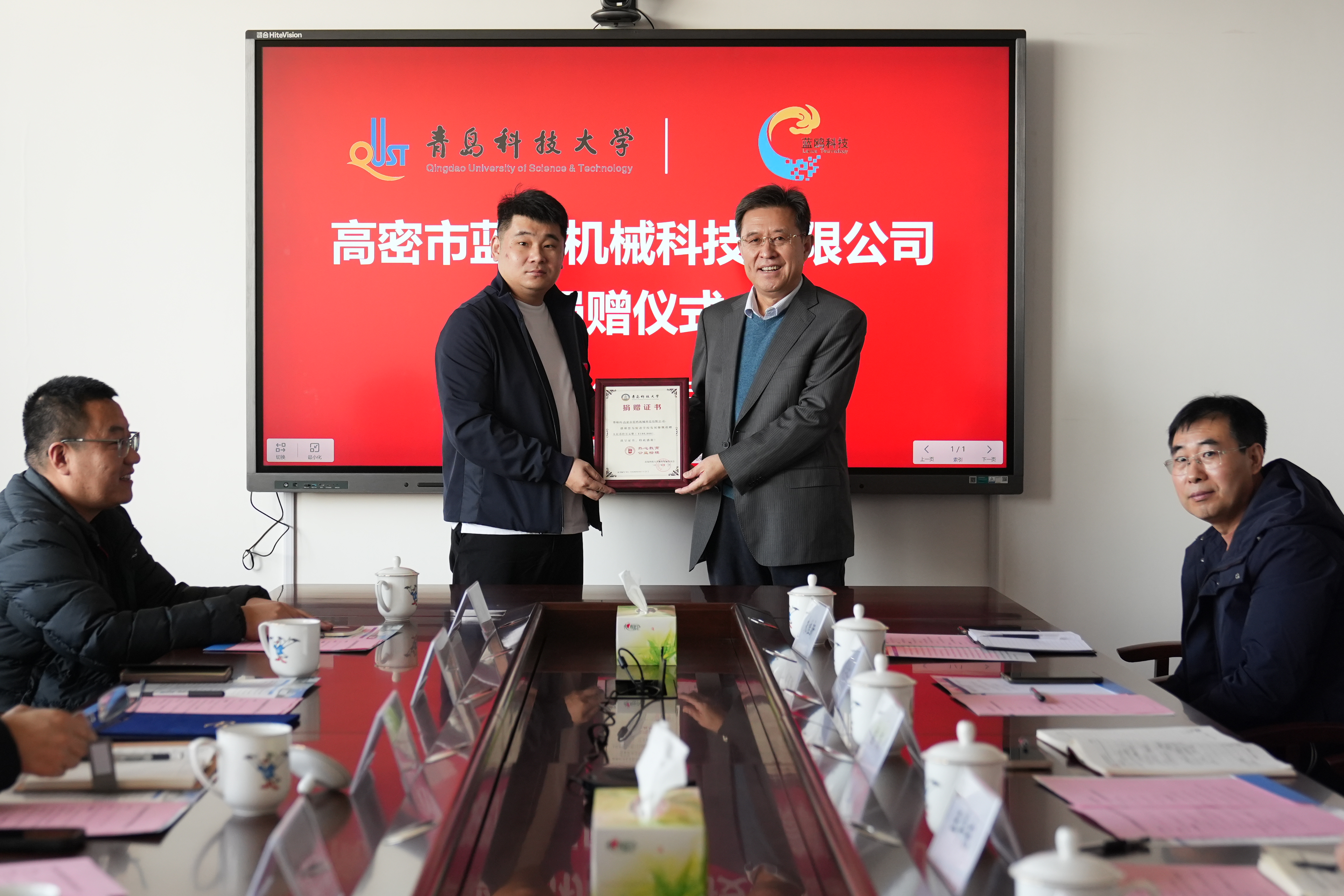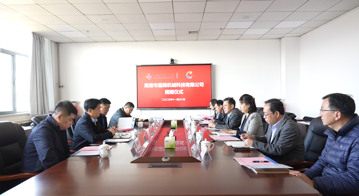 11月30日上午,高密市蓝鸥机械科技有限公司捐赠仪式在图书馆A区5004会议室举行。高密市蓝鸥机械科技有限公司董事长于洪亮、总经理李彪、特别助理于海洋、技术总监于泳水,学校星空XK官网党总支书记官杰、院长助理戴学仁出席仪式。