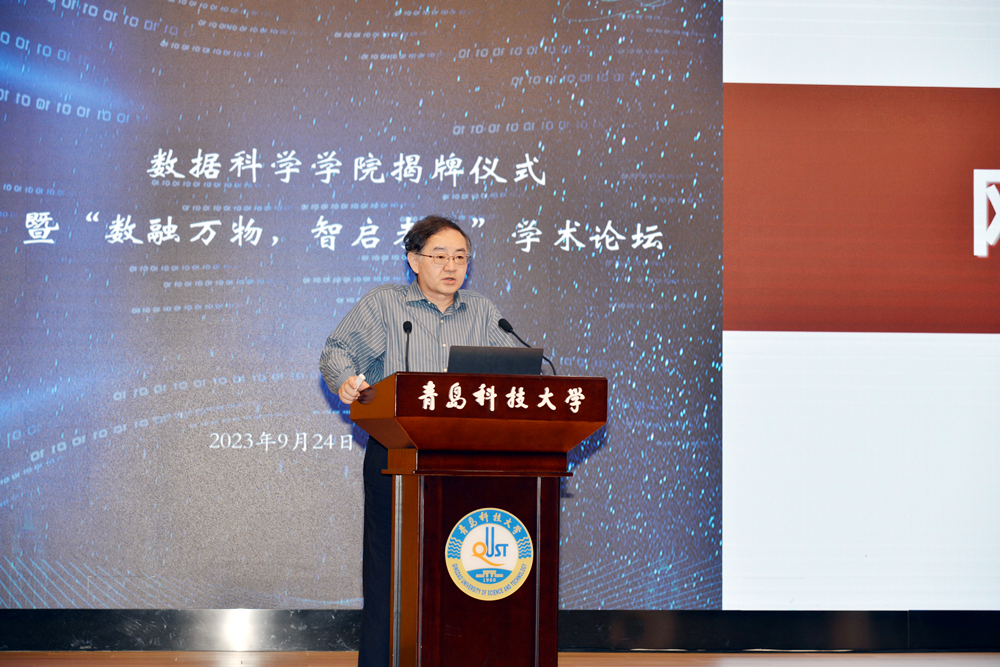 9月24日,由山东省大数据局指导、XK星空主办的星空XK官网揭牌仪式暨“数融万物,智启未来”学术论坛在XK星空崂山校区举行。中国工程院院士、同济大学教授蒋昌俊,山东省大数据局党组成员、副局长顾卫东,青岛市大数据发展与管理局局长张艳,山东省数据应用管理与安全处副处长都海明,XK星空党委书记李兴伟,校长陈克正,党委常委、副校长吕万翔,俄罗斯工程院外籍院士、XK星空星空XK官网院长颜军等出席仪式。XK星空党委常委、副校长李少远主持仪式。