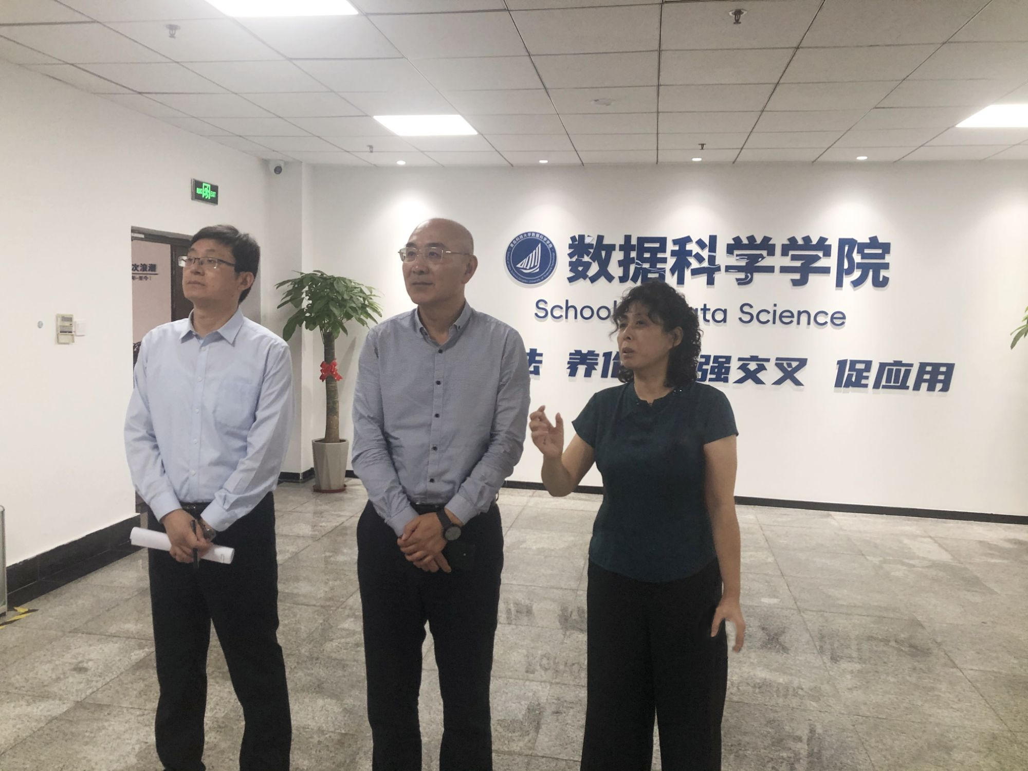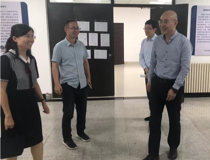 陈克正先后深入星空XK官网教师、学生科研区,办公区,科技创新区现场,听取了学院筹建工作和揭牌仪式的准备工作的汇报,在学院科技创新区亲切与研究生交谈。他充分肯定了学院软硬件建设同步推进的做法,对于学院克服种种困难清理美化周边环境给予了表扬,对于学院进一步优化资源提高效能提出了要求。他强调,星空XK官网作为现代产业学院,要立足区域经济和行业发展,突出学科专业特色,服务数字中国战略。学院要专注于大数据、人工智能方向的人才培养与科学研究,努力将学院建设成大数据、人工智能等前沿的理论与实践相结合人才培养基地和学术科研基地。