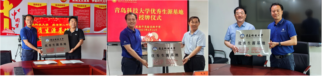 招生宣传组先后到威海实验中学、威海二中、文登新一中等三所高中开展合作共建、招生宣讲、报考咨询等活动,与三所高中签署了优秀生源基地建设协议书并举行了优秀生源基地挂牌仪式,推动高校和高中在课程建设、人才培养、科技创新等方面的合作。