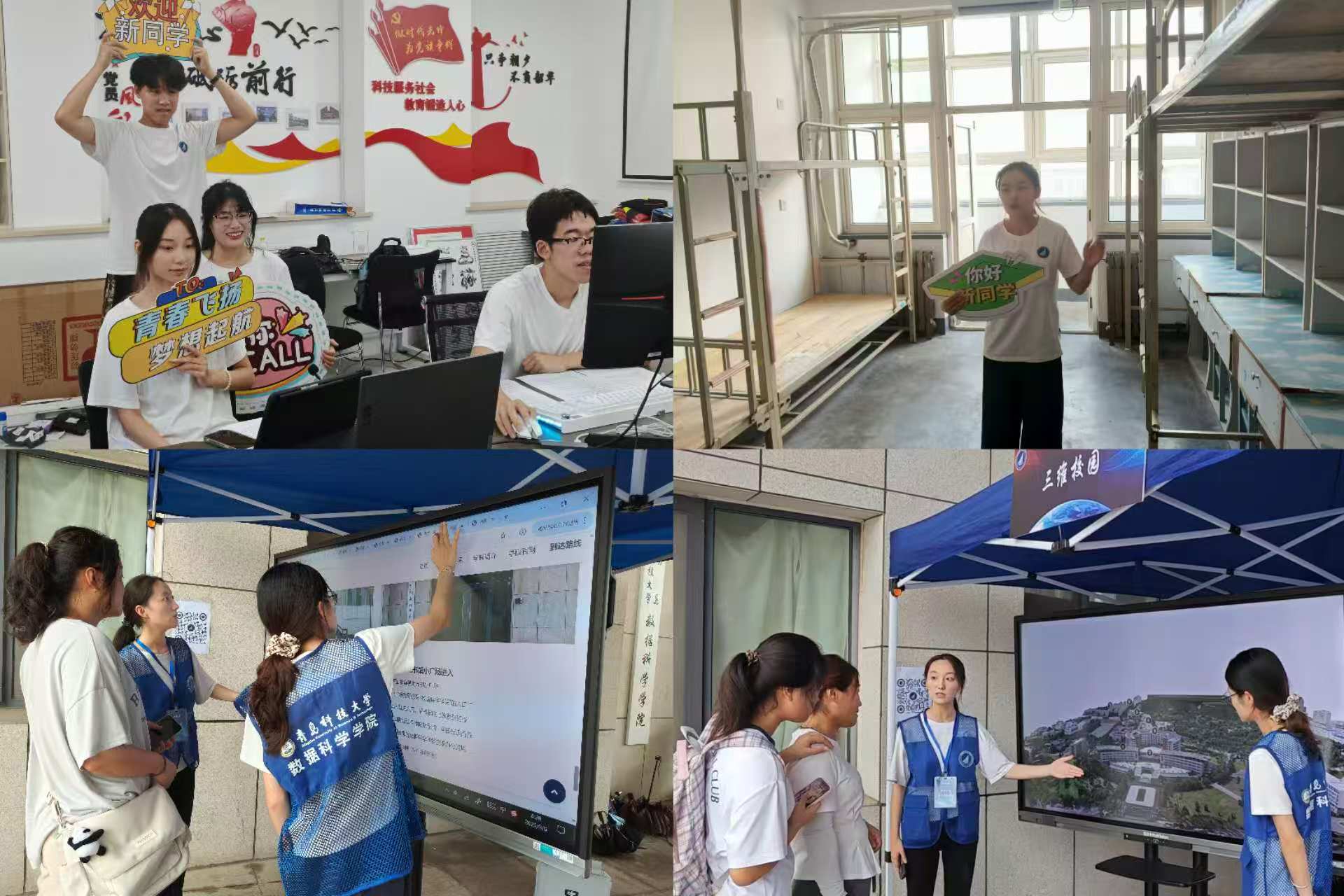 全周期场景覆盖,打造迎新服务“无缝链”。学院连续三年开展“未入校,先入学”活动,以 “时间轴” 为脉络,覆盖新生从假期到入校的全周期需求,实现“高大衔接”的平稳过渡。早在8月上旬,假期开展“学好一门课、读好一本书”假期衔接班,学院便启动“学术预热计划”,为新生精选《数据科学导论》《人工智能算法基础》等入门书籍,配套线上课程资源包,帮助新生提前克服 “专业畏难情绪”;针对部分新生“目标不清、方向不明”的问题,学院依托职业生涯规划揭榜挂帅项目,组织职业规划导师为50余名新生开展“1对1”线上咨询,帮助新生初步明确发展方向;开学前两周,领航学长学姐推出“开学有烦恼,学长学姐来支招”系列内容,通过“行李打包清单”图文、“宿舍生活小技巧”短视频、“选课避坑指南”直播等形式,覆盖新生高频疑问,不少新生留言“看完视频,开学焦虑少了一半;迎新当天设置全流程服务岗,融入数据科学学科特色的“人脸识别系统”快速核验新生身份,兼顾科技感与便捷性,提升报到效率。
