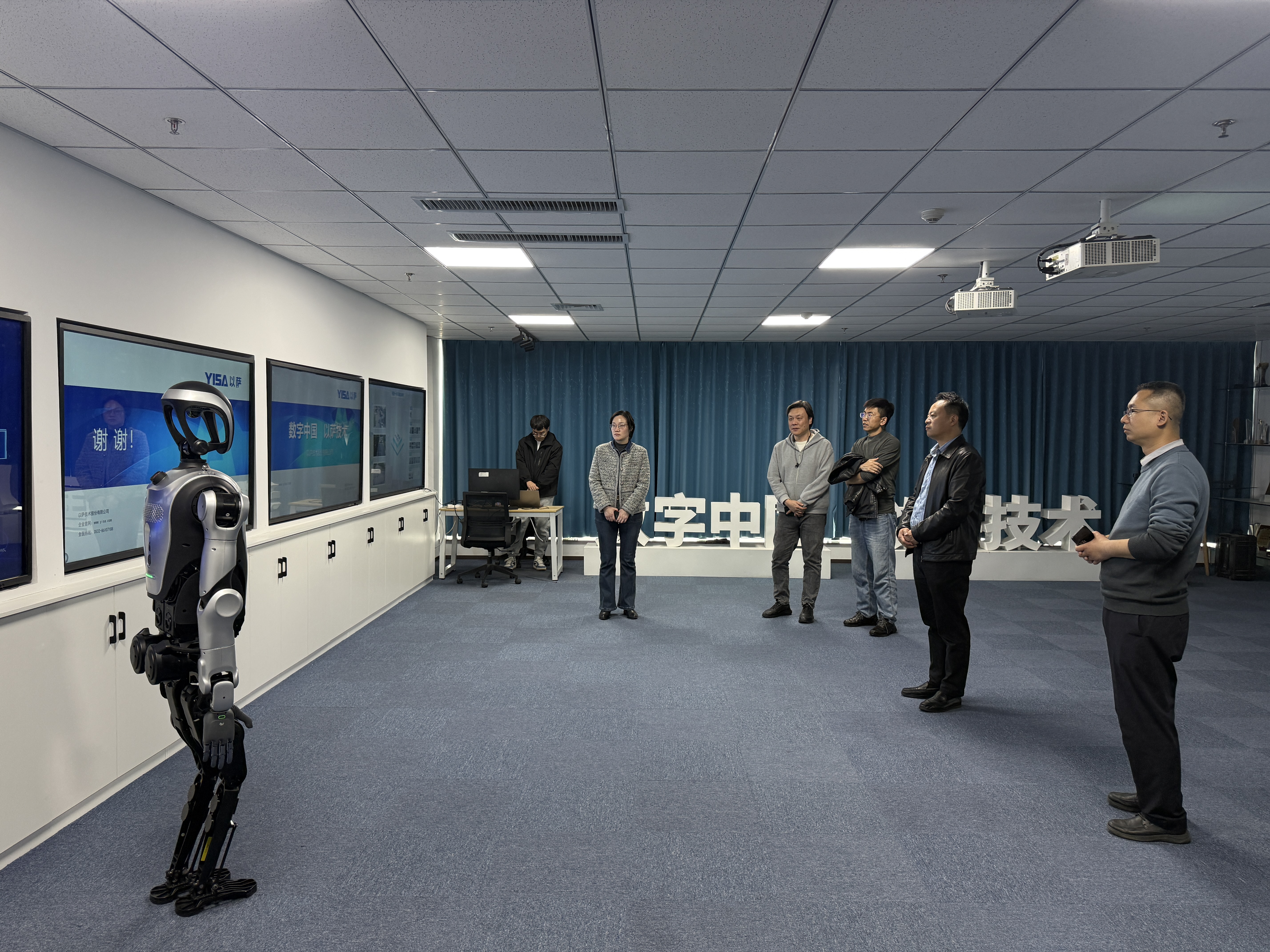 随后,杜军威一行前往以萨技术股份有限公司。公司副总裁姚巍热情接待了学院一行,带领大家参观了企业技术展厅,详细介绍了公司的生产经营状况、核心竞争力、科技研发实力,以及在人工智能、大数据分析、数字城市建设等领域取得的丰硕业绩成果。座谈会上,双方就科研项目协同攻关、研究生联合培养、实习实训基地共建、科技创新成果转化等方面进行了深入探讨,进一步明确了合作方向,为后续深化校企合作、实现互利共赢奠定了坚实基础。