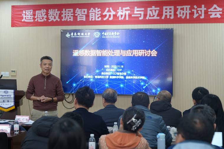 随后,CCF青岛分部主席赵建立教授进行了致辞。他指出,随着空间探测技术的快速发展,遥感科学无论在教育教学领域还是在产学研融合当中,其地位和价值日渐凸显,如何将其与大数据、人工智能技术有效融合,实现海量遥感数据的智能化处理和分析,为地球科学研究和应用提供更为精准、高效的支持,是我们需要重视的问题。同时,他还强调了CCF在遥感领域发展中的重要作用和责任。