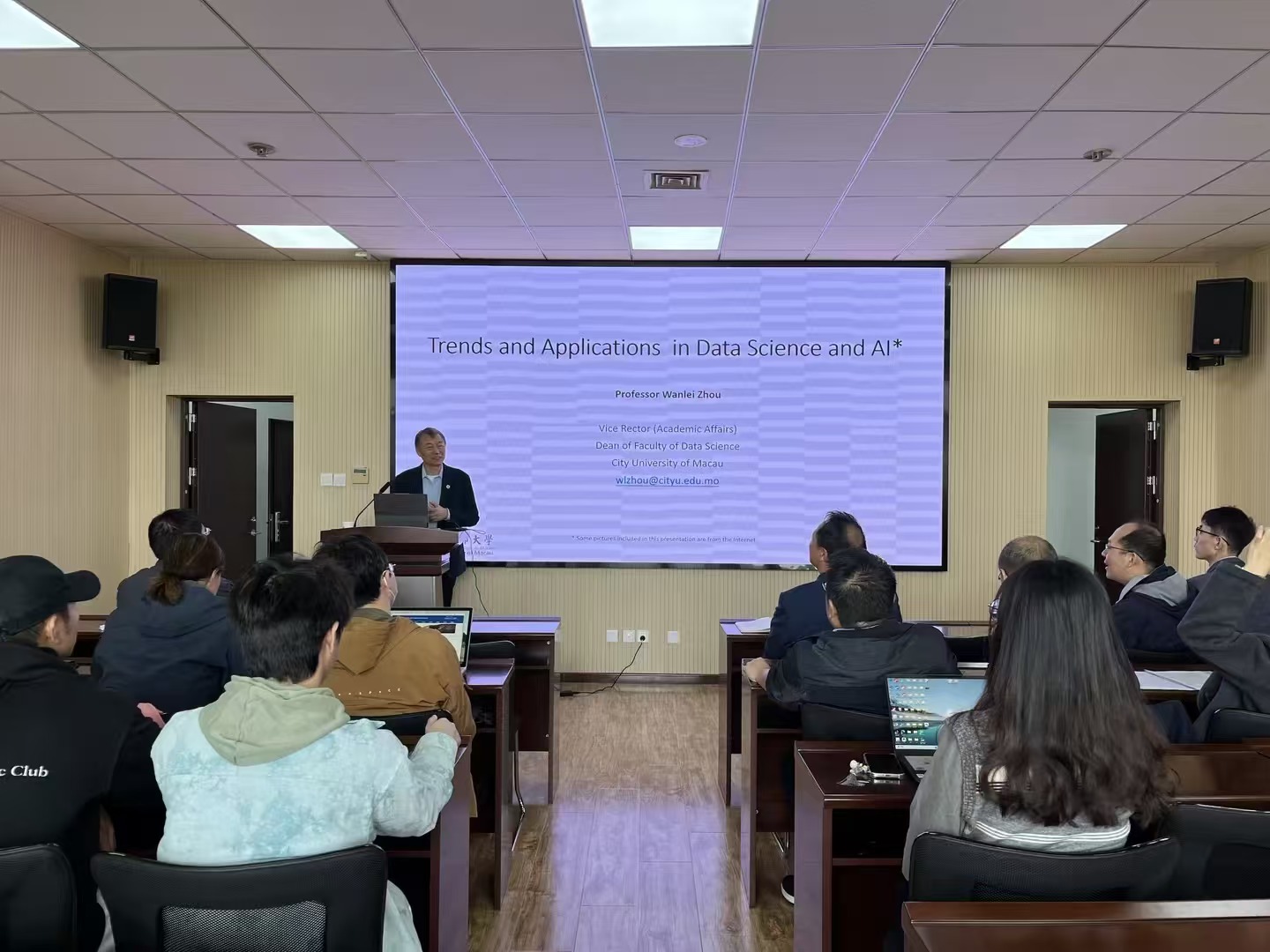 本次沙龙以“大数据与人工智能在数据科学和AI中的应用”为主题,特别邀请了澳门城市大学副校长兼星空XK官网院长周万雷教授做报告。周万雷在报告中指出,数据科学与人工智能已成为当今数字化社会中极具影响力的学科领域,在推动决策制定、创新与效率提升方面具有重要意义。他详细阐述了数据科学和人工智能的跨学科属性、未来发展趋势及其在全球范围内的广泛应用。此外,周万雷还分享了澳门城市大学在跨学科课程开发方面的经验,并提出学好数据科学和人工智能的关键要素,并简要介绍了其最新研究成果。